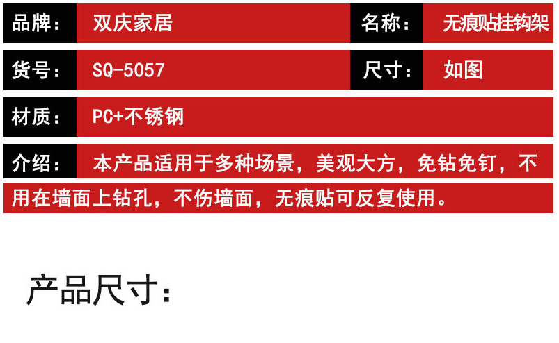 雙慶強力粘鉤衛生間創意吸盤粘膠貼墻掛鉤廚房壁掛免打孔浴室掛鉤1入