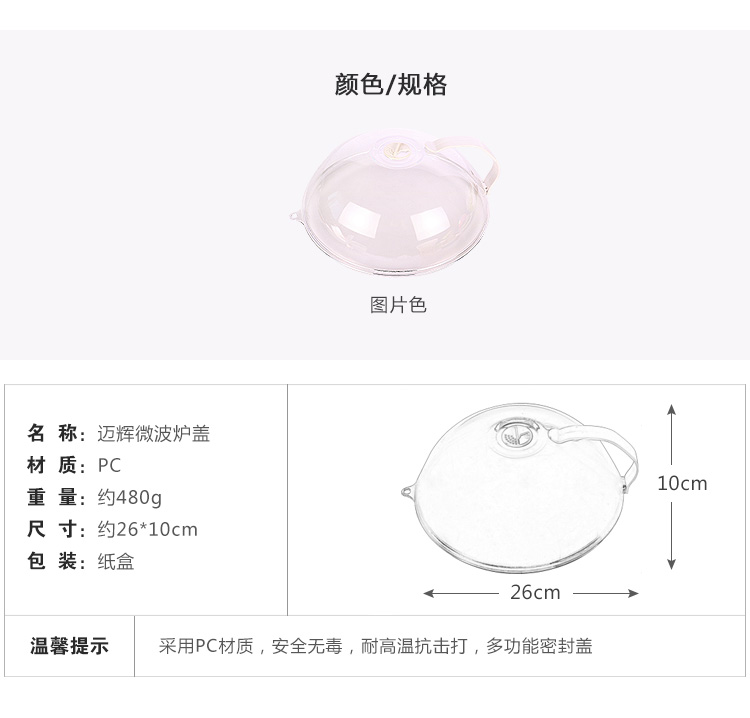 邁輝微波爐蓋子加熱蓋專用塑料透明碗蓋熱菜罩防油蓋密封保鮮蓋1入