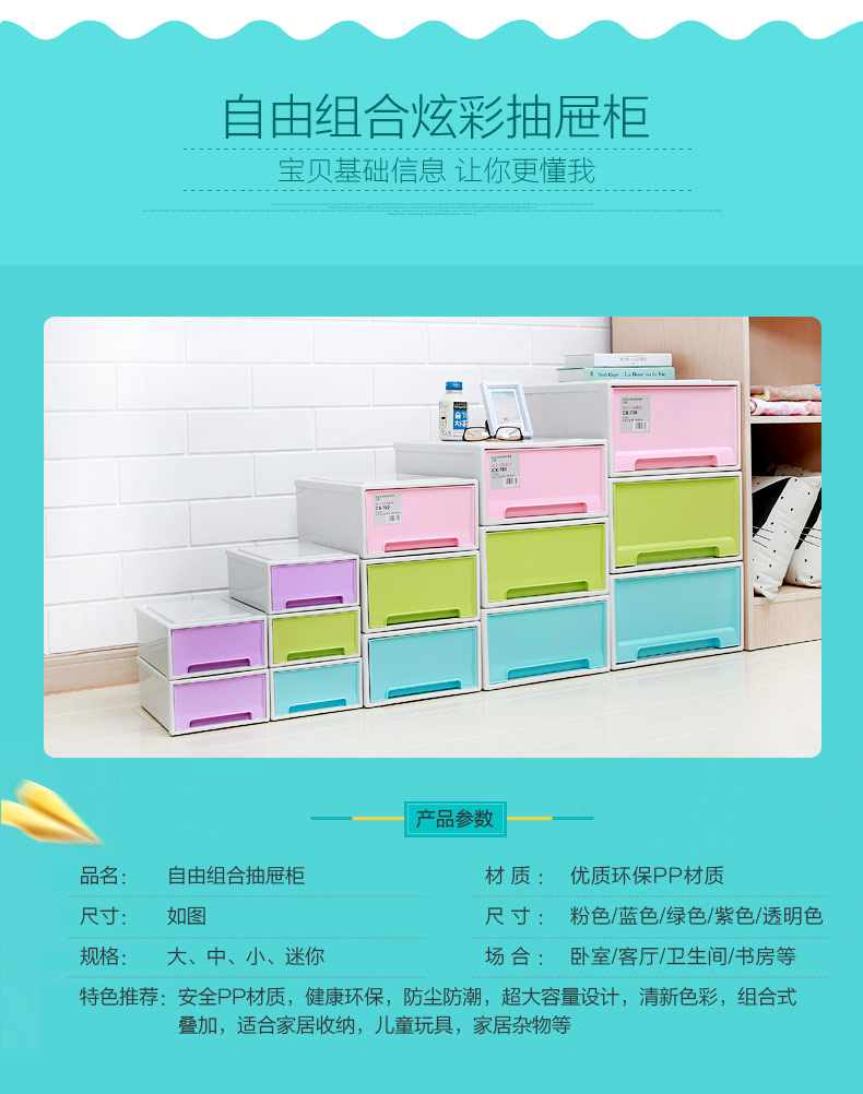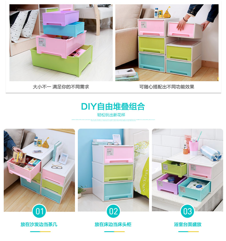 衣柜塑料收納箱特大小號抽屜式內衣玩具衣物整理箱自由組合儲物盒1入