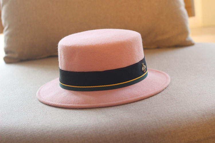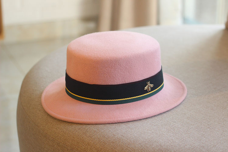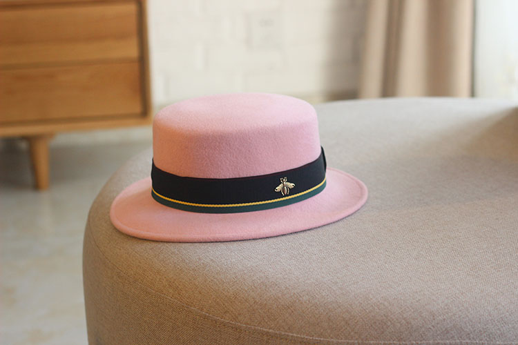 英式羊毛呢小禮帽采用高檔純羊毛,手感細膩,造型挺立,不僅僅可以修飾臉型,粉色可愛顏色更是粉色控的心頭愛。