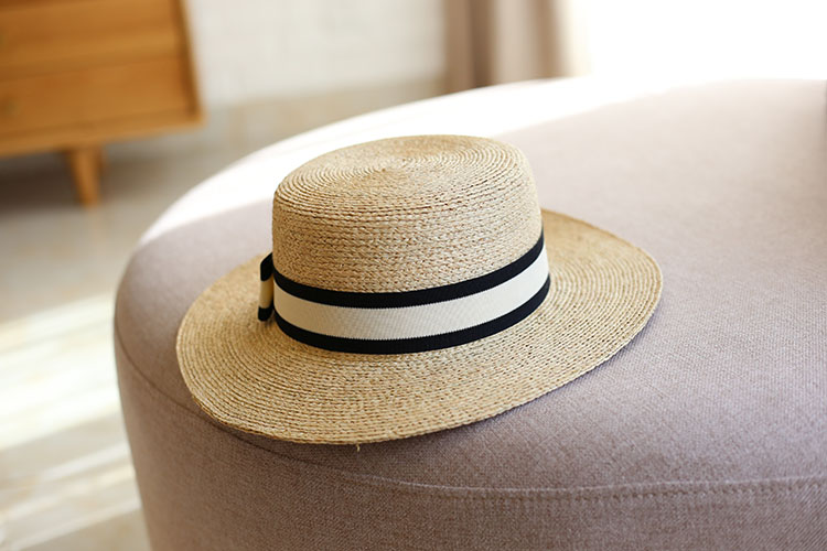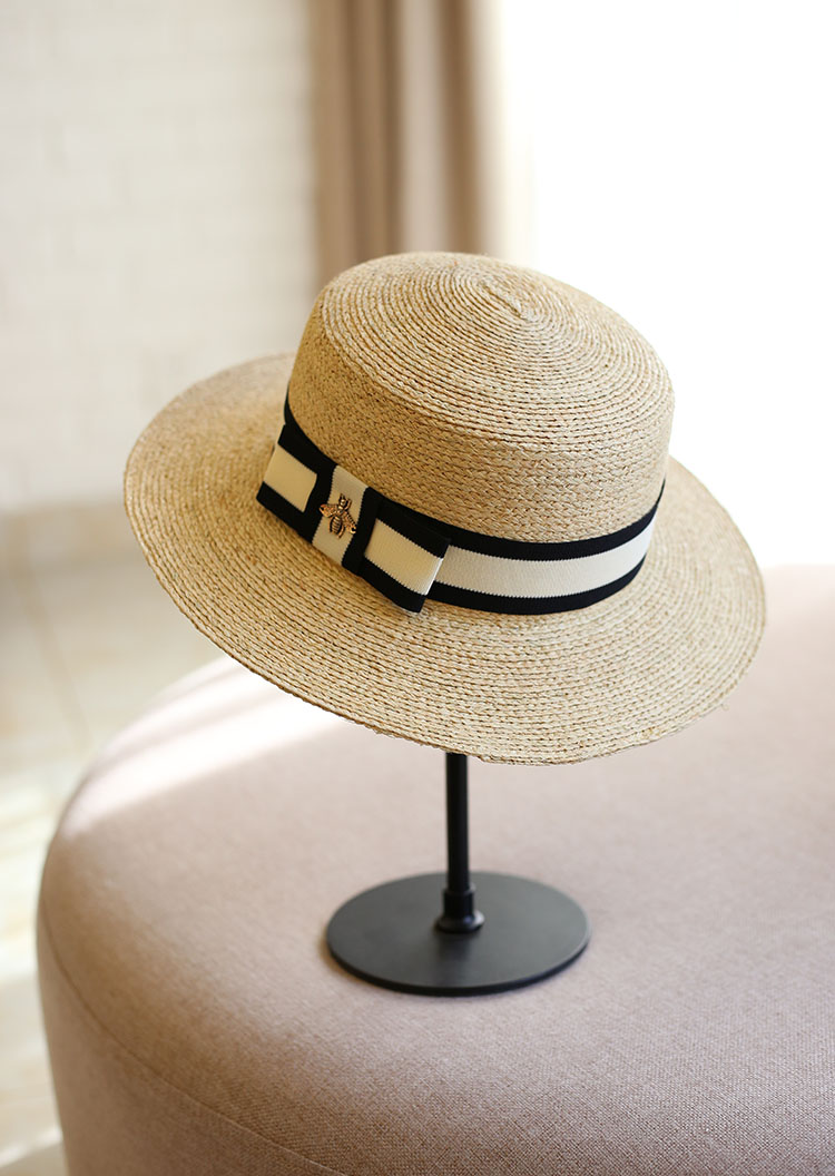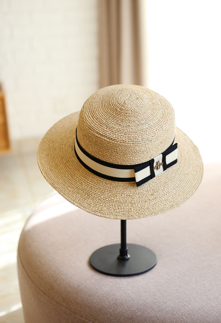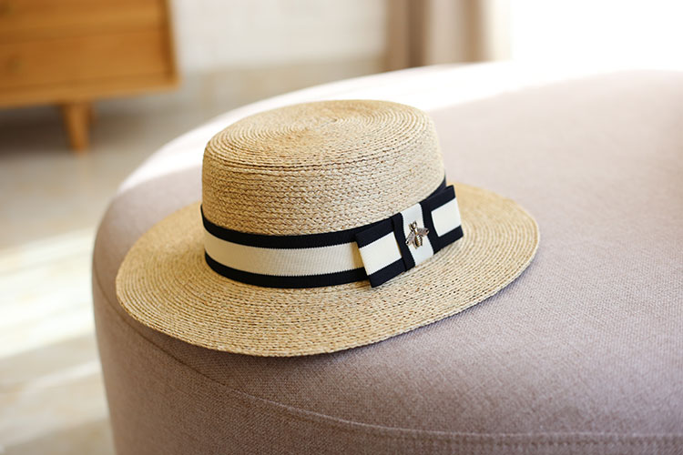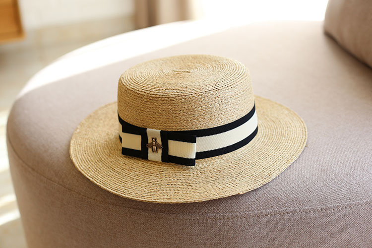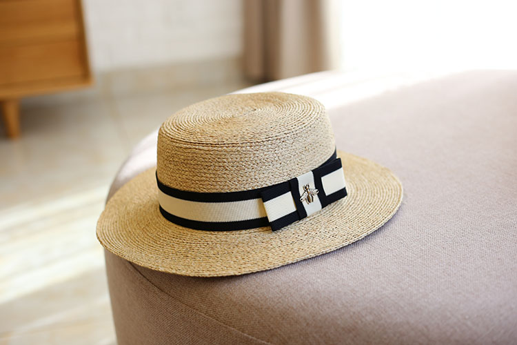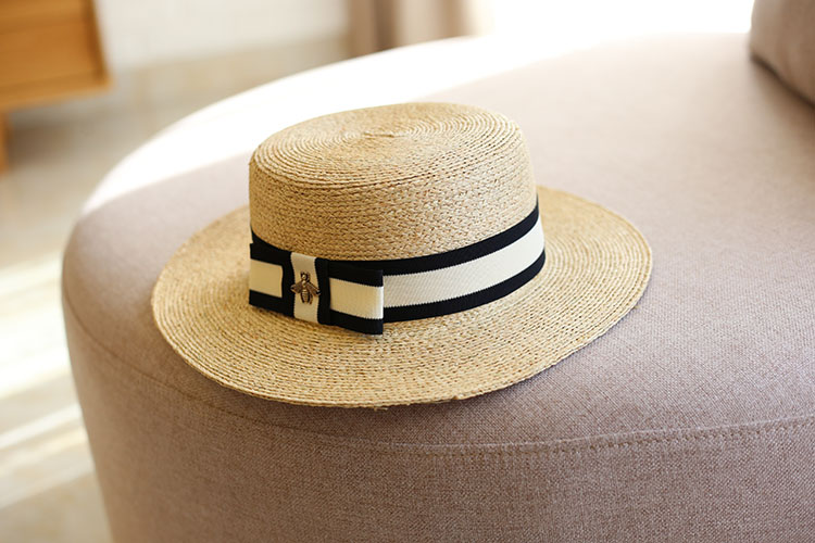 蜜蜂平頂拉菲草草帽子 禮帽遮陽帽子爵士帽 女 防曬 出游 百搭1入
