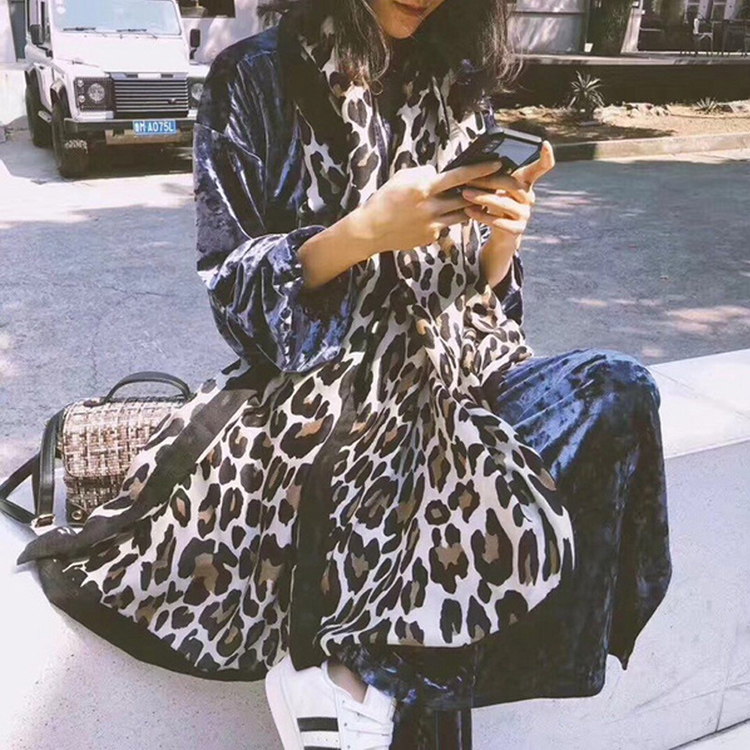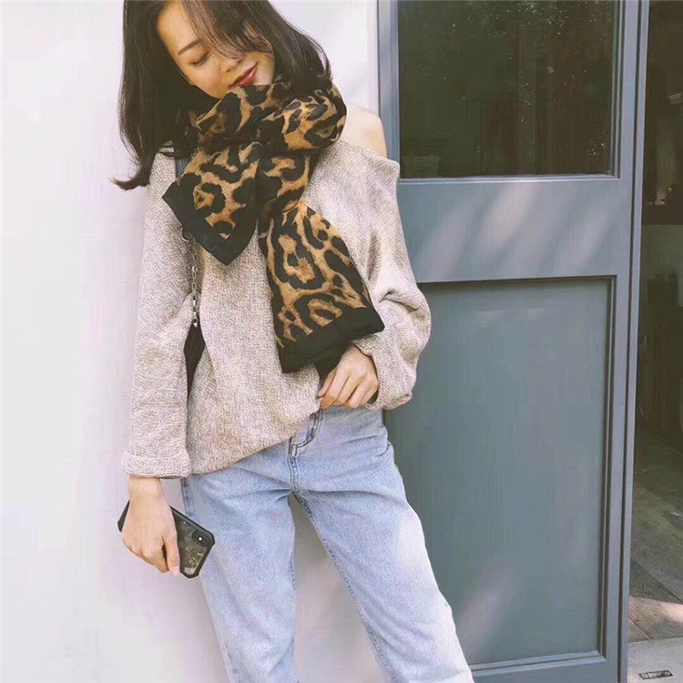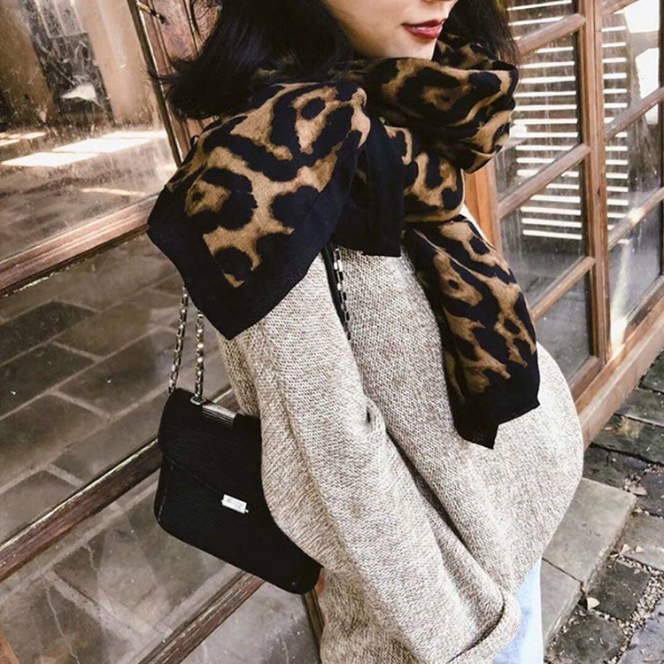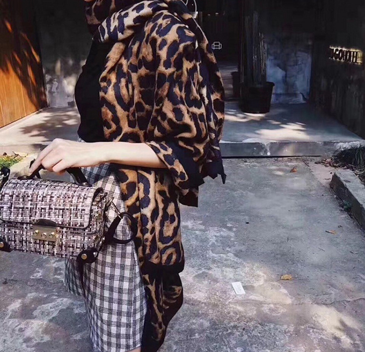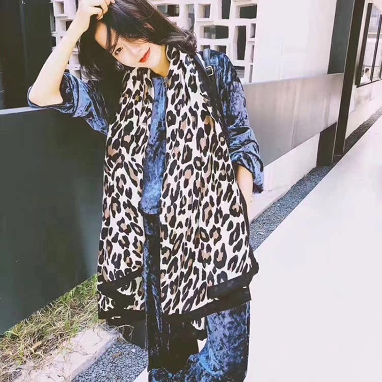 豹紋圍巾女秋冬季2018款韓版百搭紗巾保暖圍脖超大披肩1入