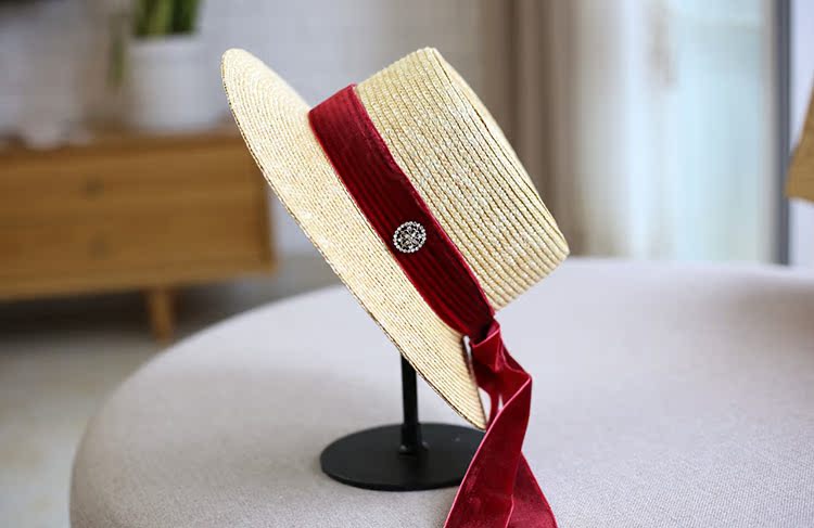 麥稈平頂禮帽女百搭防曬遮陽海邊度假沙灘帽子草帽子女夏天 韓版1入