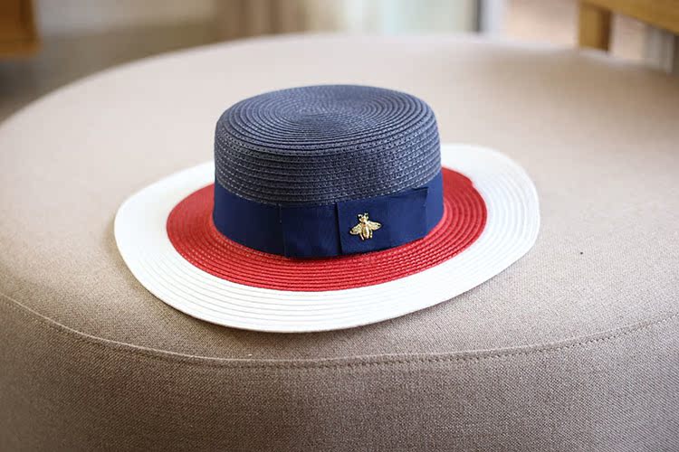 韓版平頂休閑沙灘草帽女春夏季遮陽禮帽爵士寬檐出游百搭太陽帽子1入