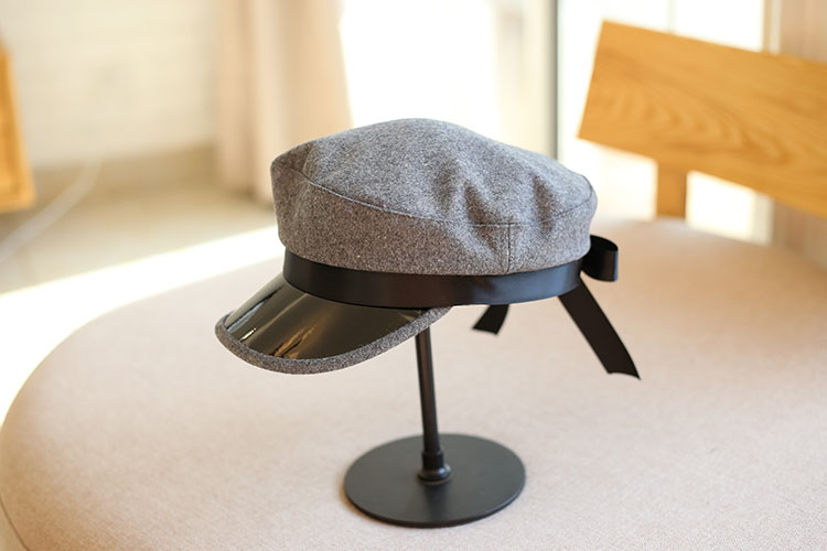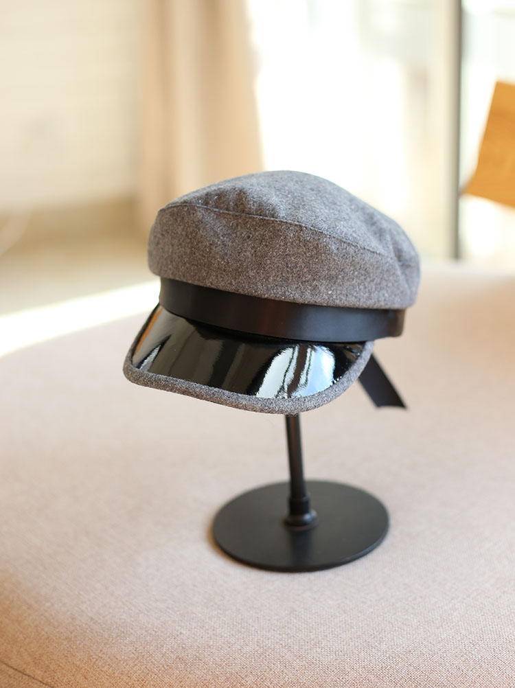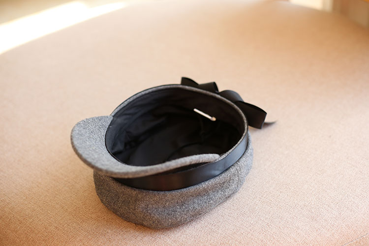 蝴蝶結織帶皮質帽檐休閑女士軍帽