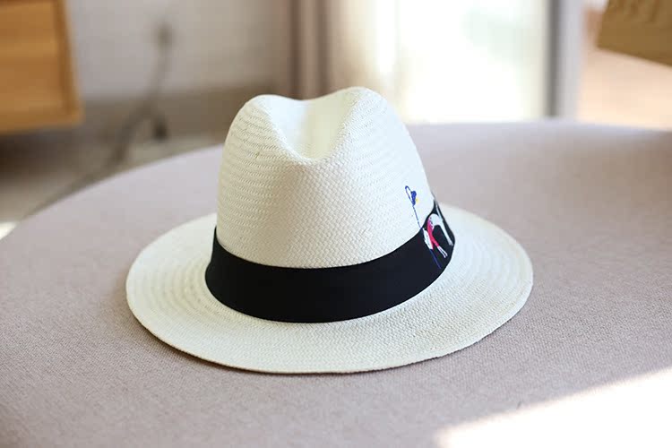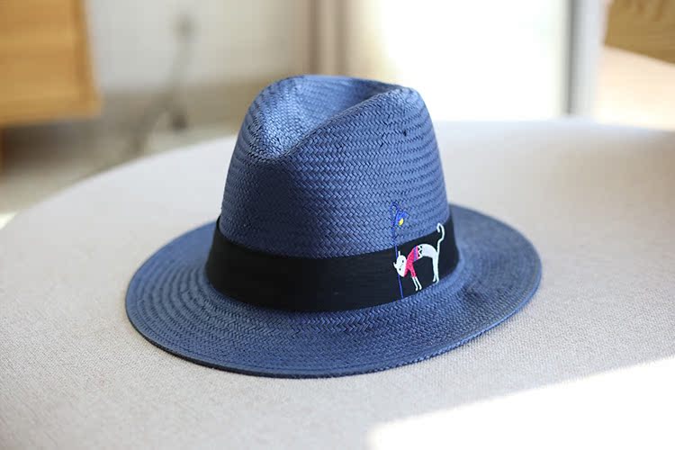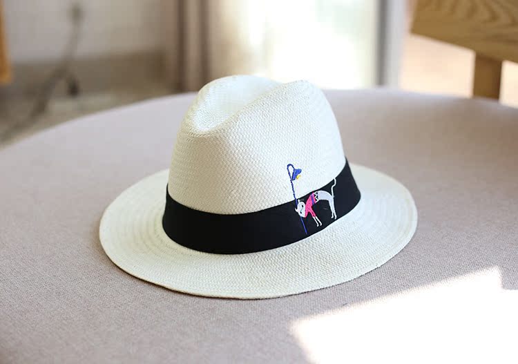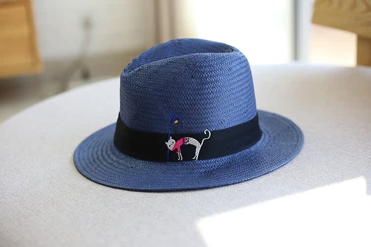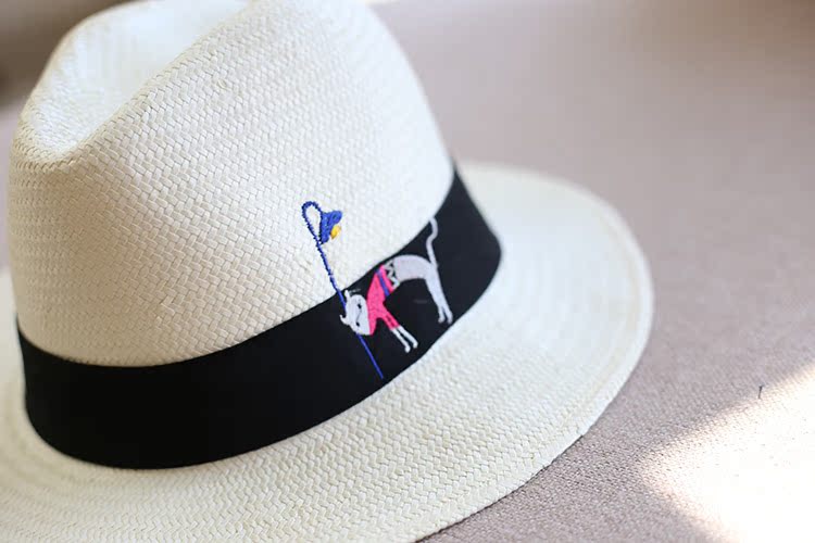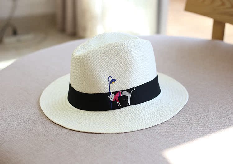 貓咪八分草平檐草帽 出游度假女士夏天防曬遮陽沙灘帽爵士禮帽子1入