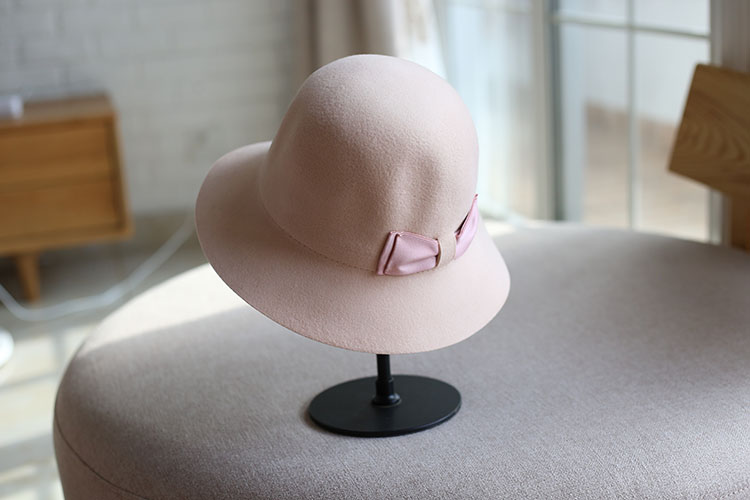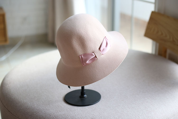蝴蝶結羊毛呢盆帽漁夫帽可折疊時裝帽子秋冬女 潮 百搭韓版小清新1入