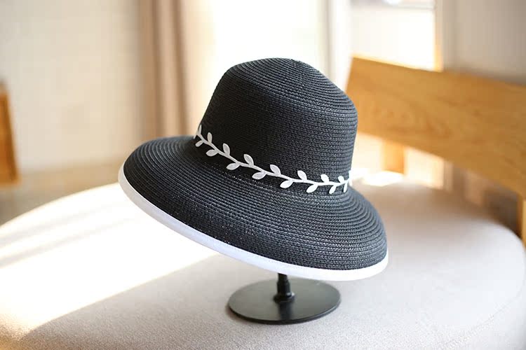 黑色帽子女士夏天防曬大沿帽遮陽帽草帽韓版沙灘帽女遮臉出游百搭1入