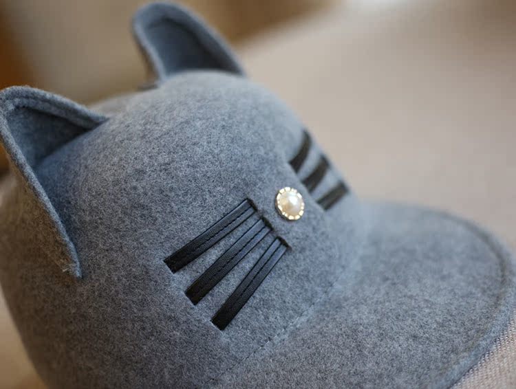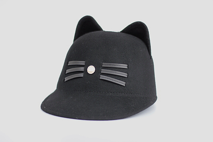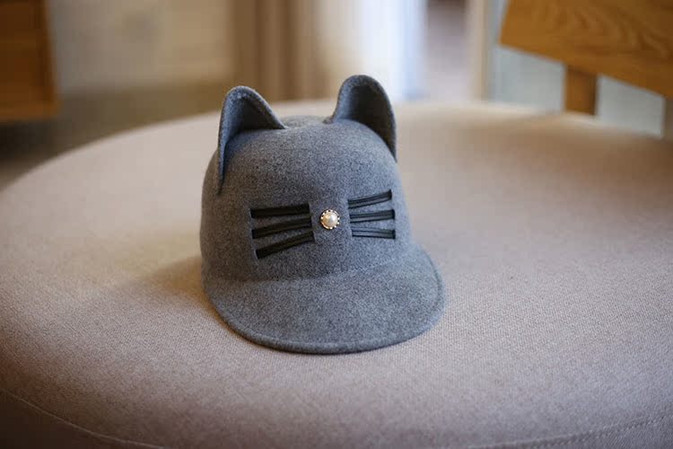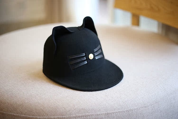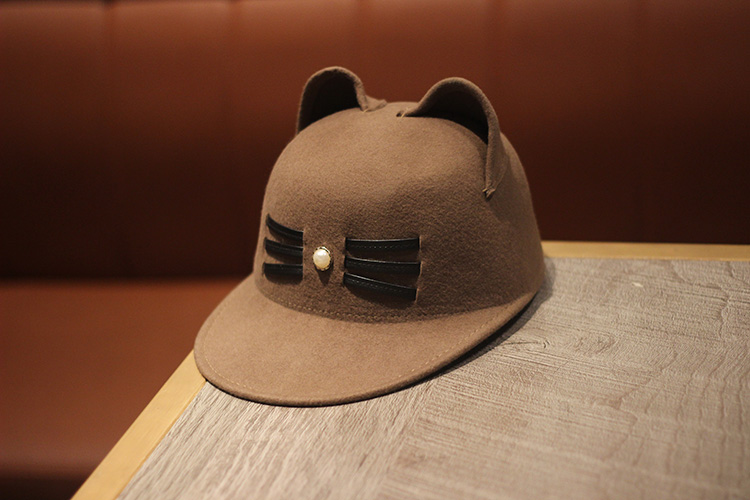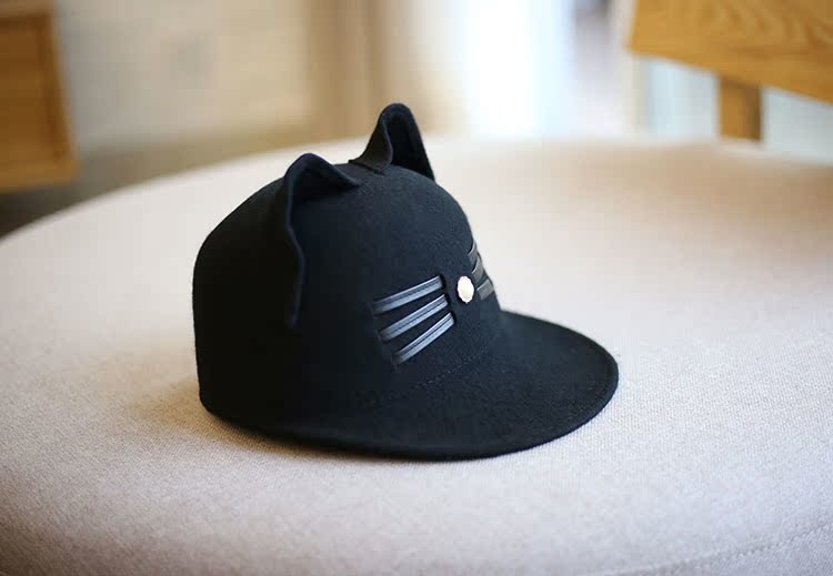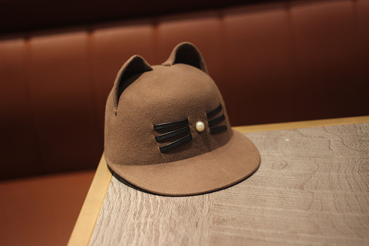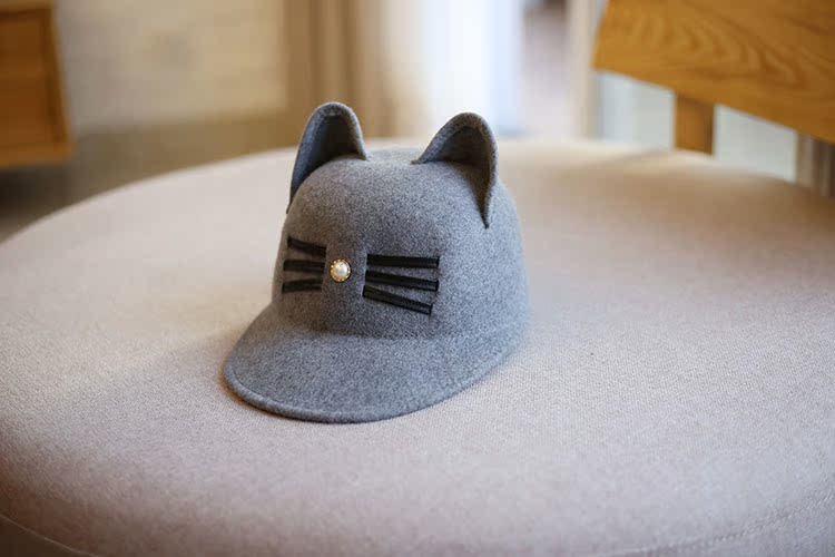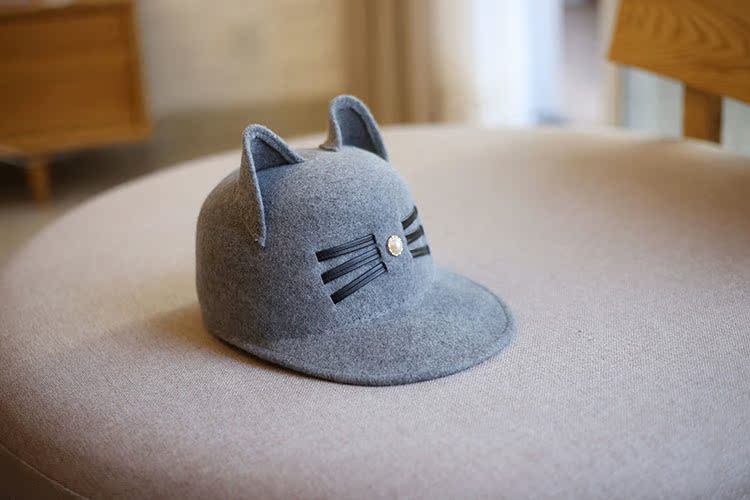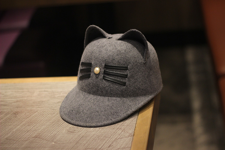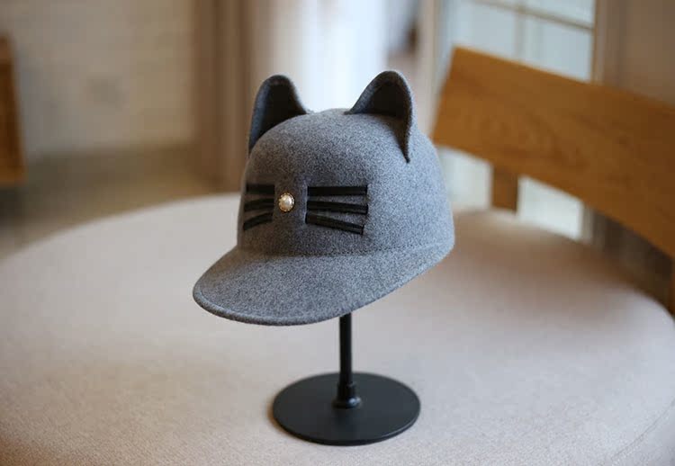 貓咪胡子耳朵羊毛呢棒球帽馬術帽鴨舌帽子女韓版百搭秋冬帽子女1入