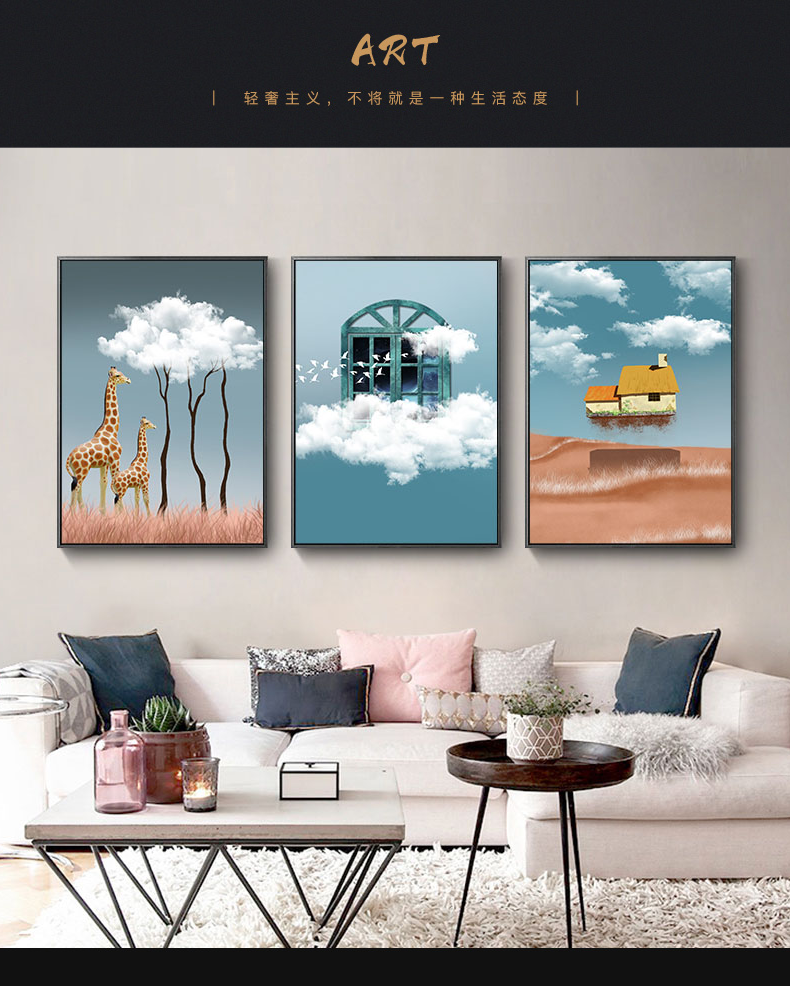 鉆石畫滿鉆北歐現代簡約時尚兒童房鉆石繡長頸鹿餐廳三聯畫貼鉆繡1入