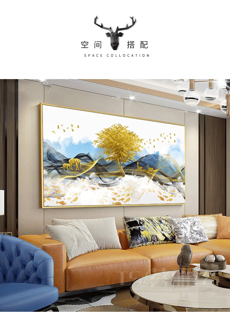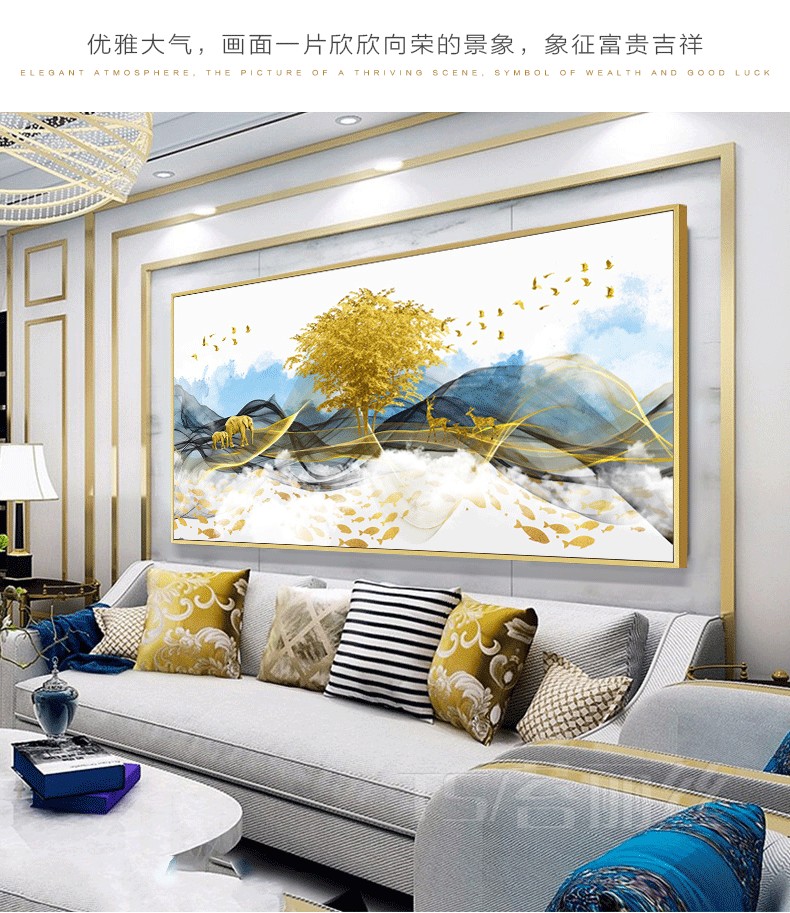 大件北歐輕奢鉆石畫客廳餐廳床頭現代發財鹿滿鉆十字繡磚石繡掛畫1入