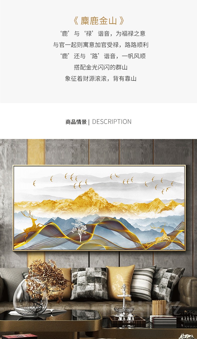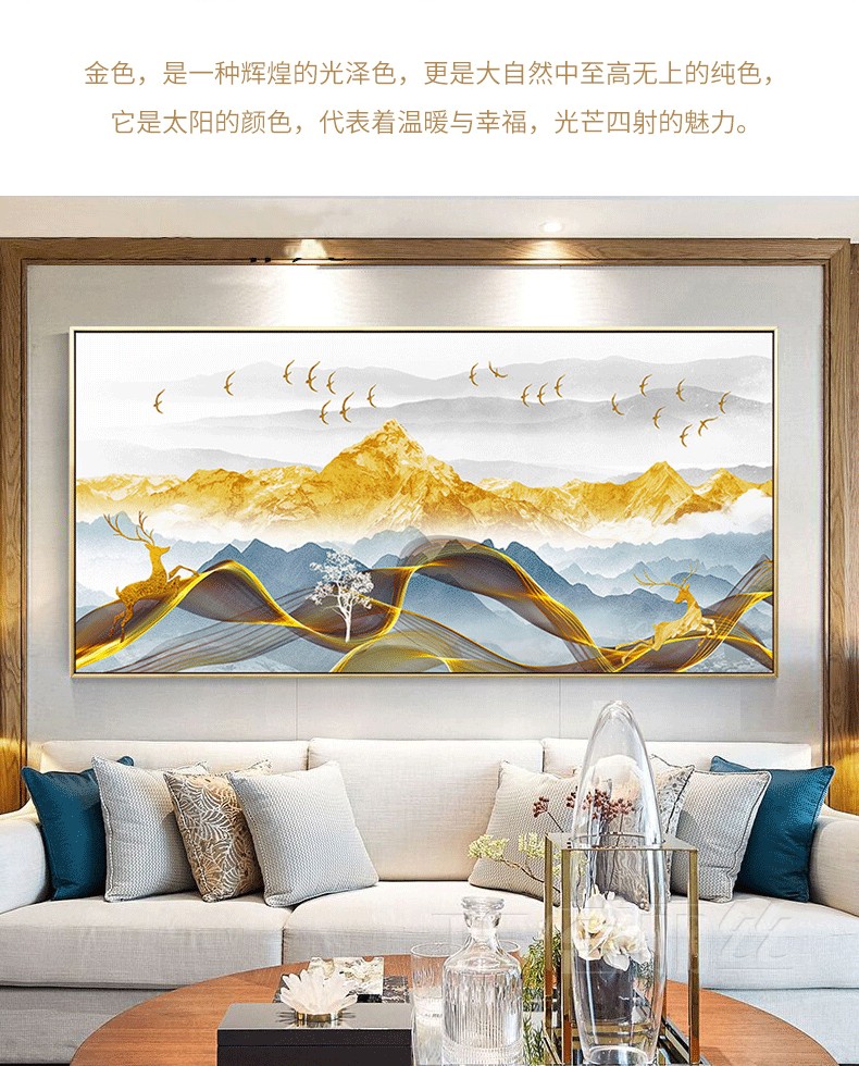 北歐橫版客廳餐廳發財鹿床頭鉆石畫新款點鉆滿鉆5D十字繡磚石繡1入