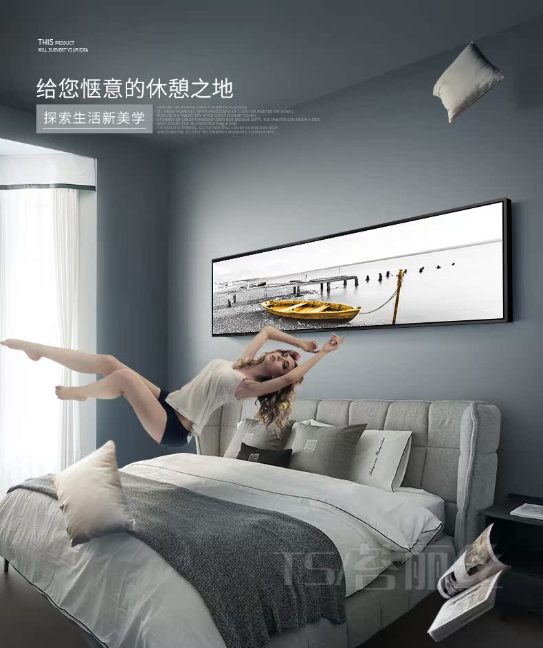 鉆石畫臥室掛畫床頭簡約現代DIY貼鉆繡磚石畫橫版滿鉆十字繡新款1入