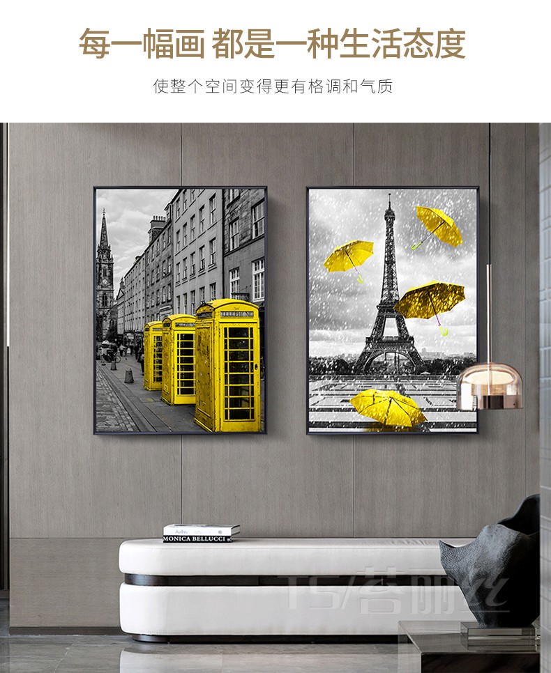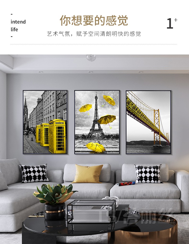 三聯畫客廳鉆石畫滿鉆新款巴黎街頭風景鉆石繡十字繡鐵塔黑白鉆繡1入