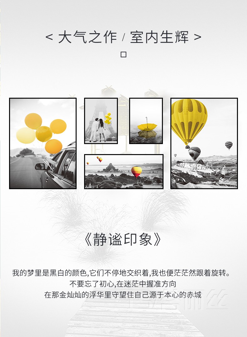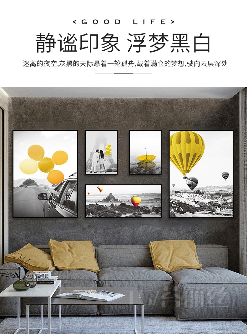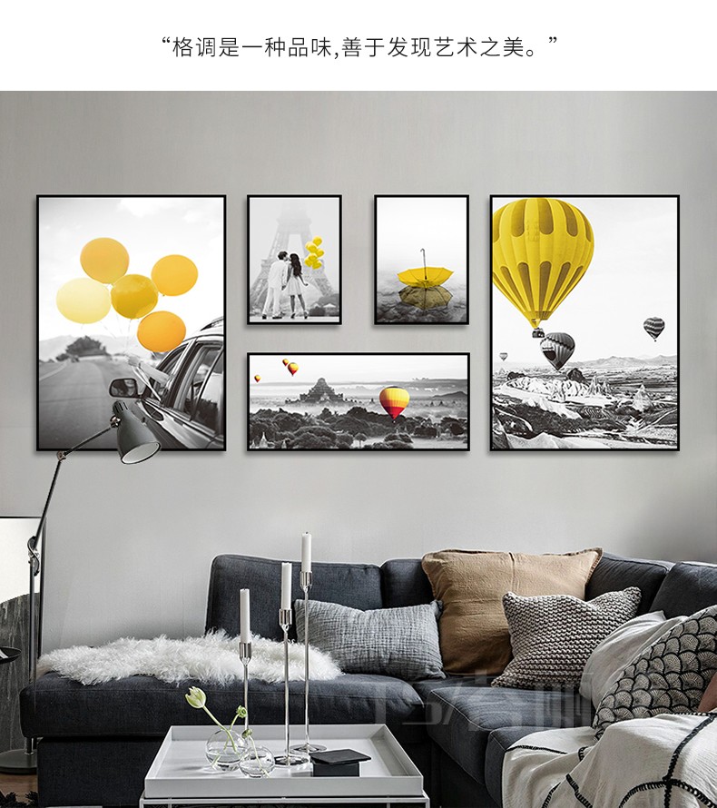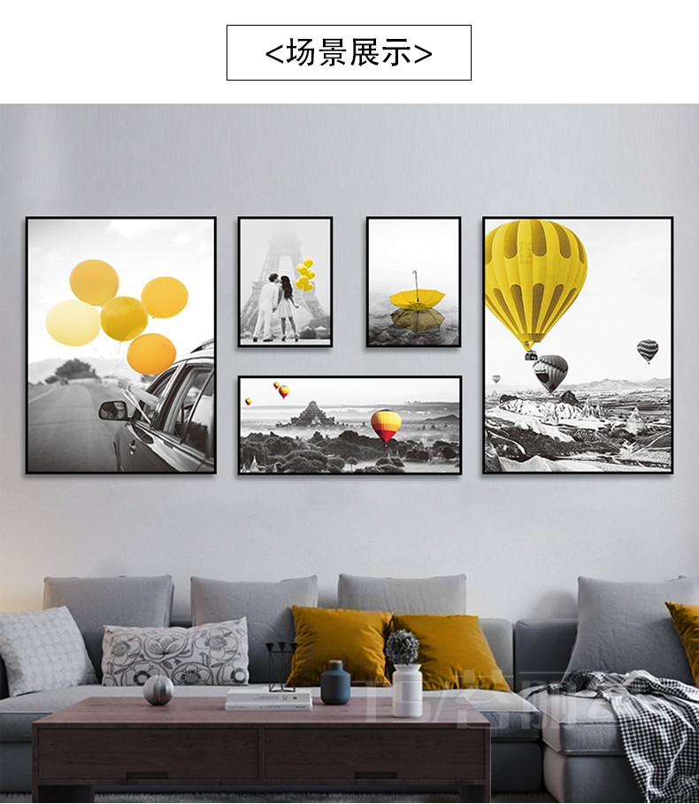 5d鉆石畫滿鉆新款 客廳北歐簡約熱氣球浪漫風景組合聯畫鉆石繡1入