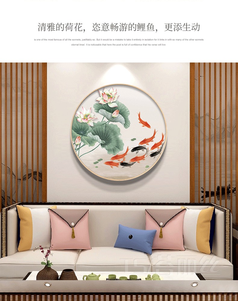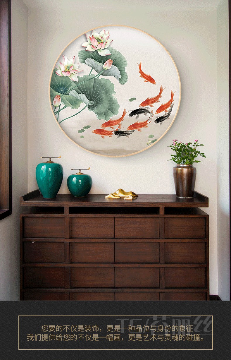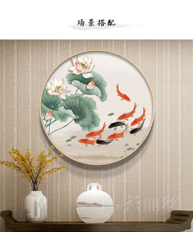 5d鉆石畫滿鉆新款九魚圖鉆石秀鯉魚荷花磚石畫現代客廳圓形鉆石繡1入