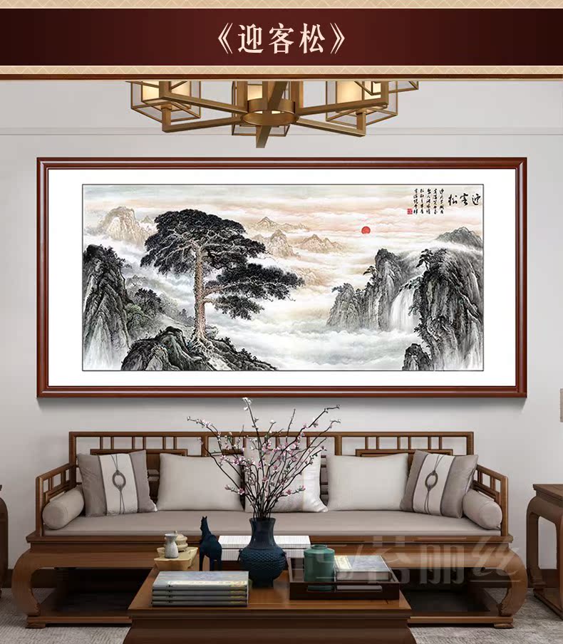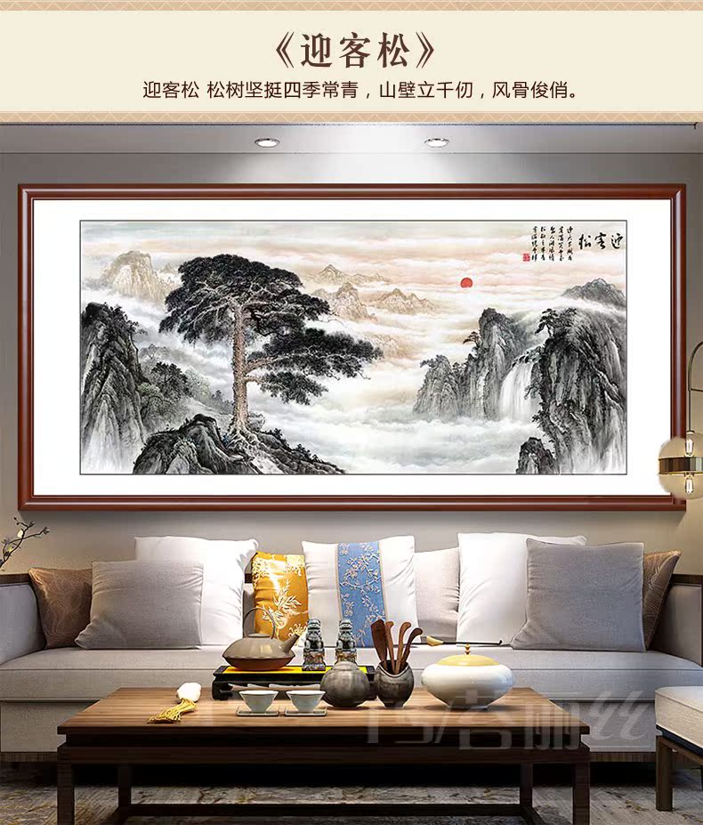 新中式山水畫鉆石畫滿鉆客廳迎客松大氣辦公室2米國畫風景鉆石繡1入