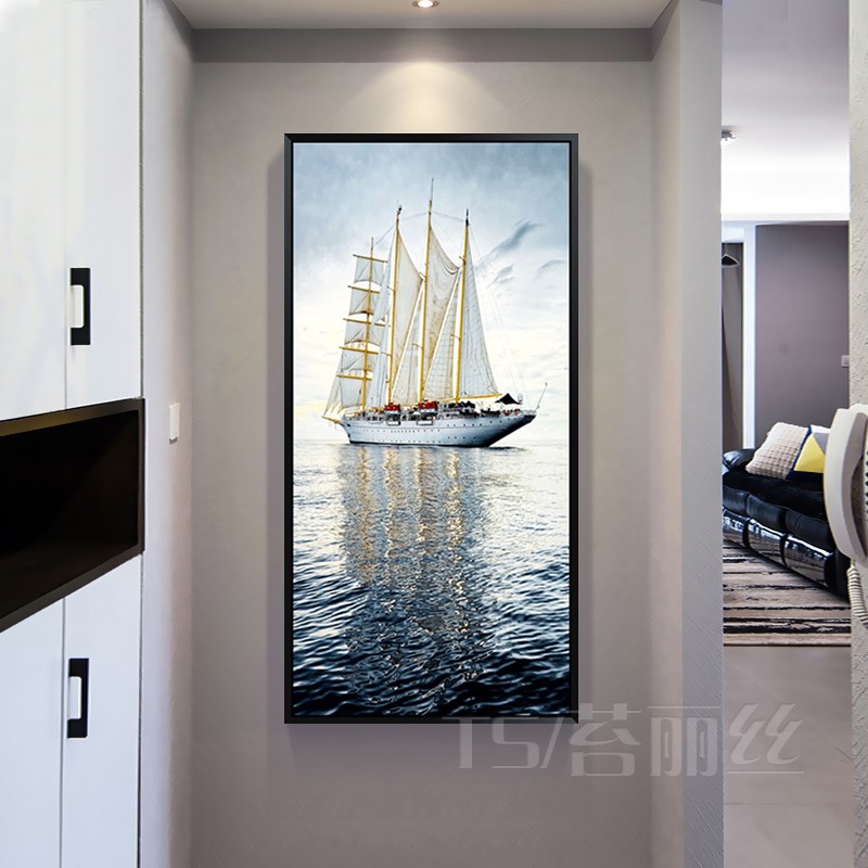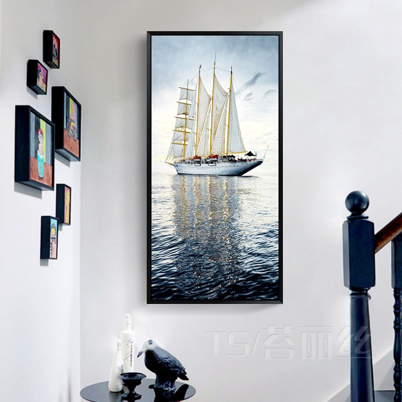 十字繡一帆風順玄關走廊過道豎版現代客廳風景線繡版滿繡線自己繡1入