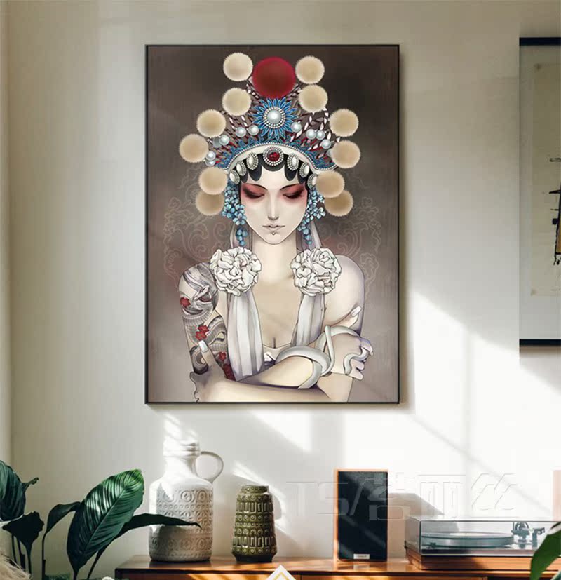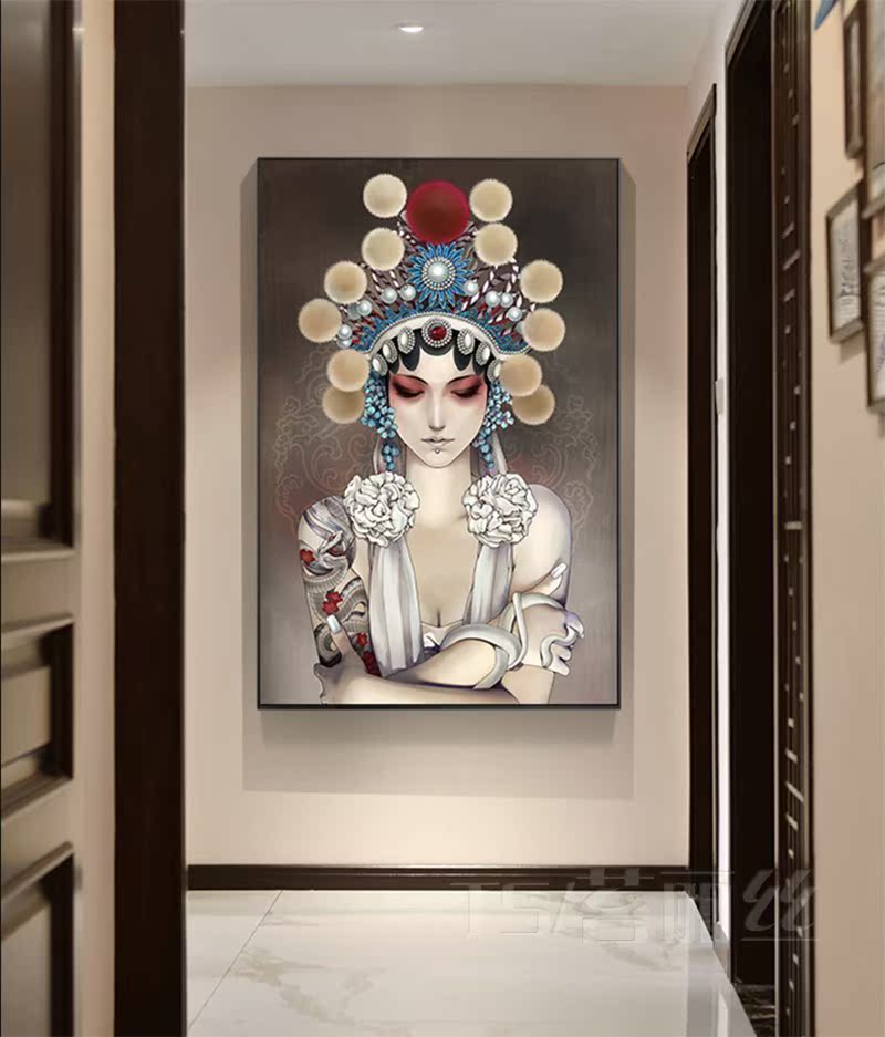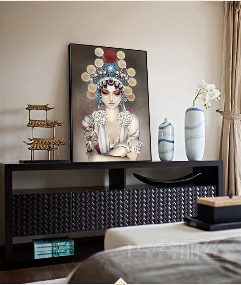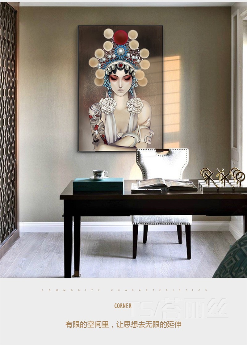 古典十字繡玄關豎版滿繡花旦戲曲人物線繡系列新中式客廳禪意刺繡1入