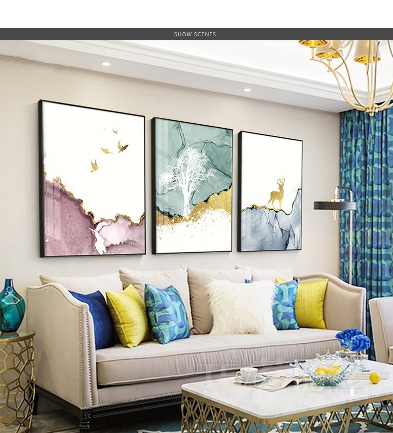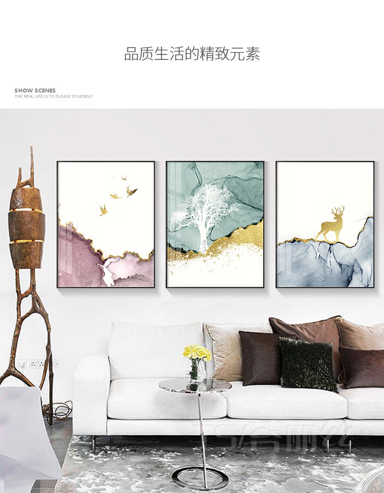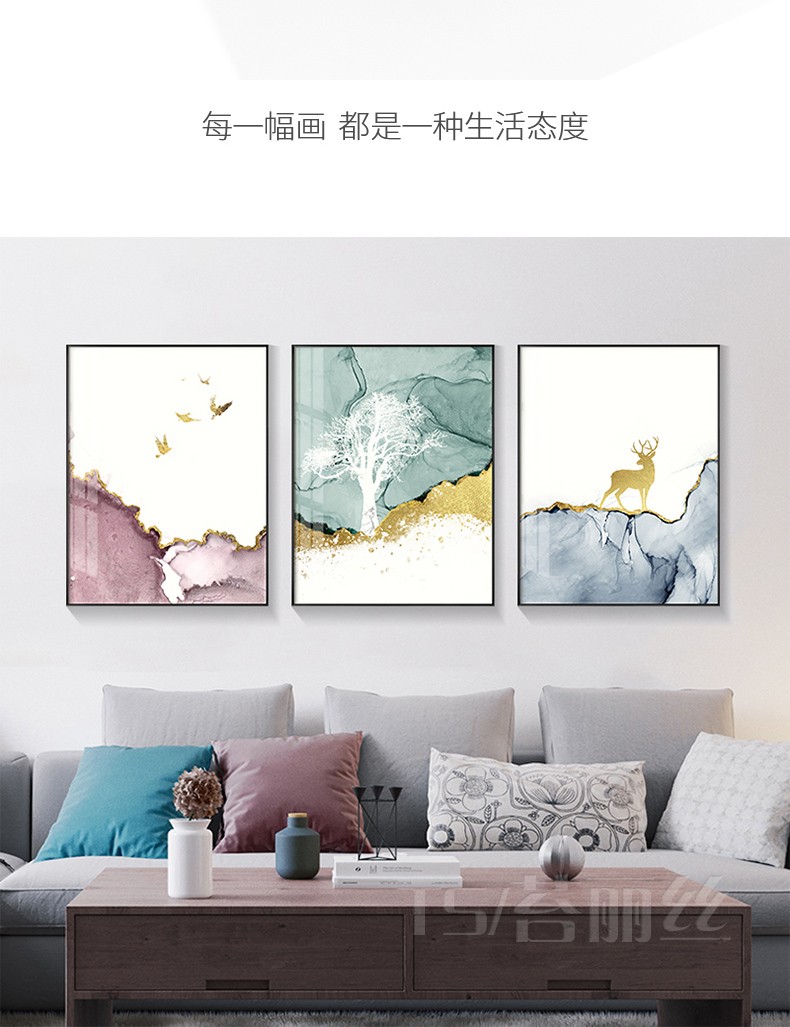北歐十字繡三聯畫滿繡新款客廳家用現代簡約麋鹿線繡版掛畫簡單繡1入