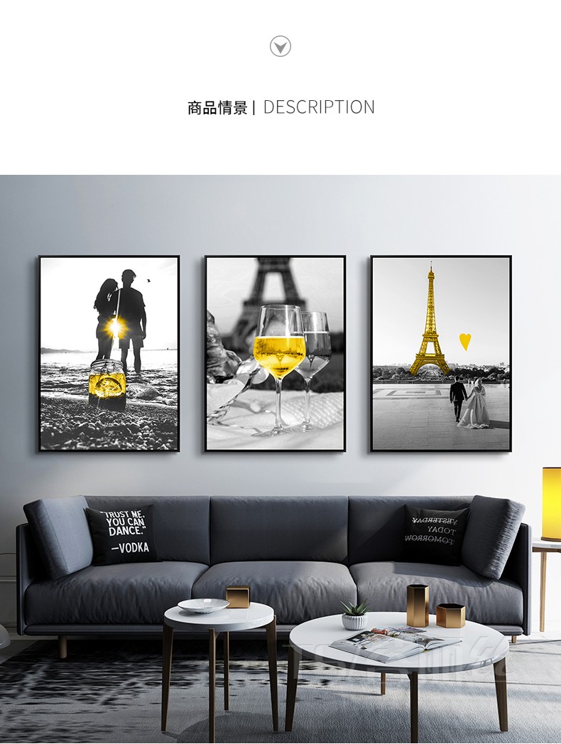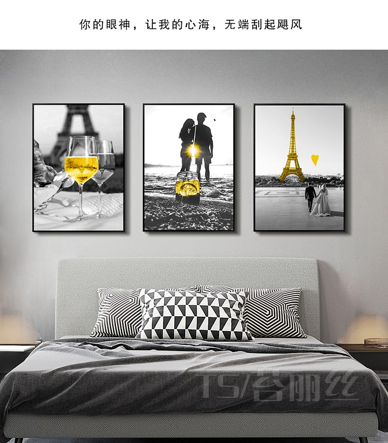黑白簡約北歐客廳鉆石畫滿鉆巴黎鐵塔浪漫臥室風景三聯鉆石十字繡1入