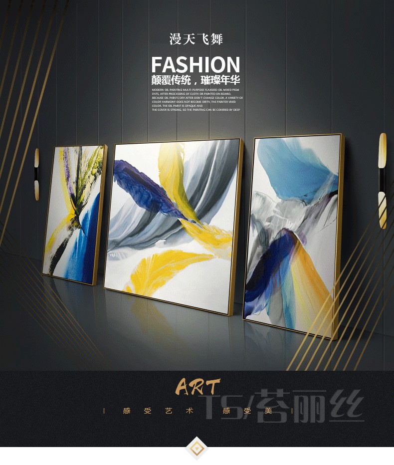 抽象羽毛十字繡三聯畫客廳藝術簡單滿繡2019新款線繡臥室簡約現代1入