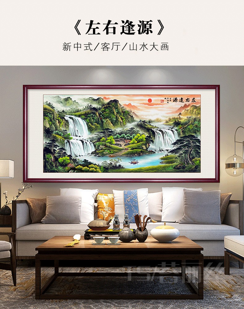 中國風山水畫點鉆十字繡滿鉆新款左右逢源現代客廳風景鉆石畫貼鉆1入
