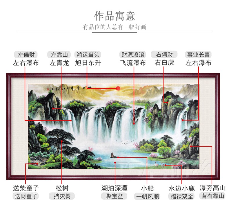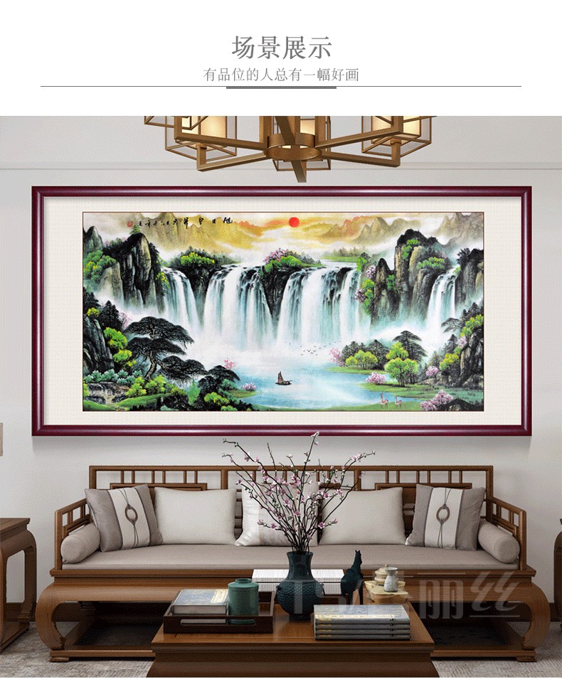 新中式客廳鉆石畫滿鉆新款旭日東升鉆石繡辦公室山水風景5d貼鉆繡1入