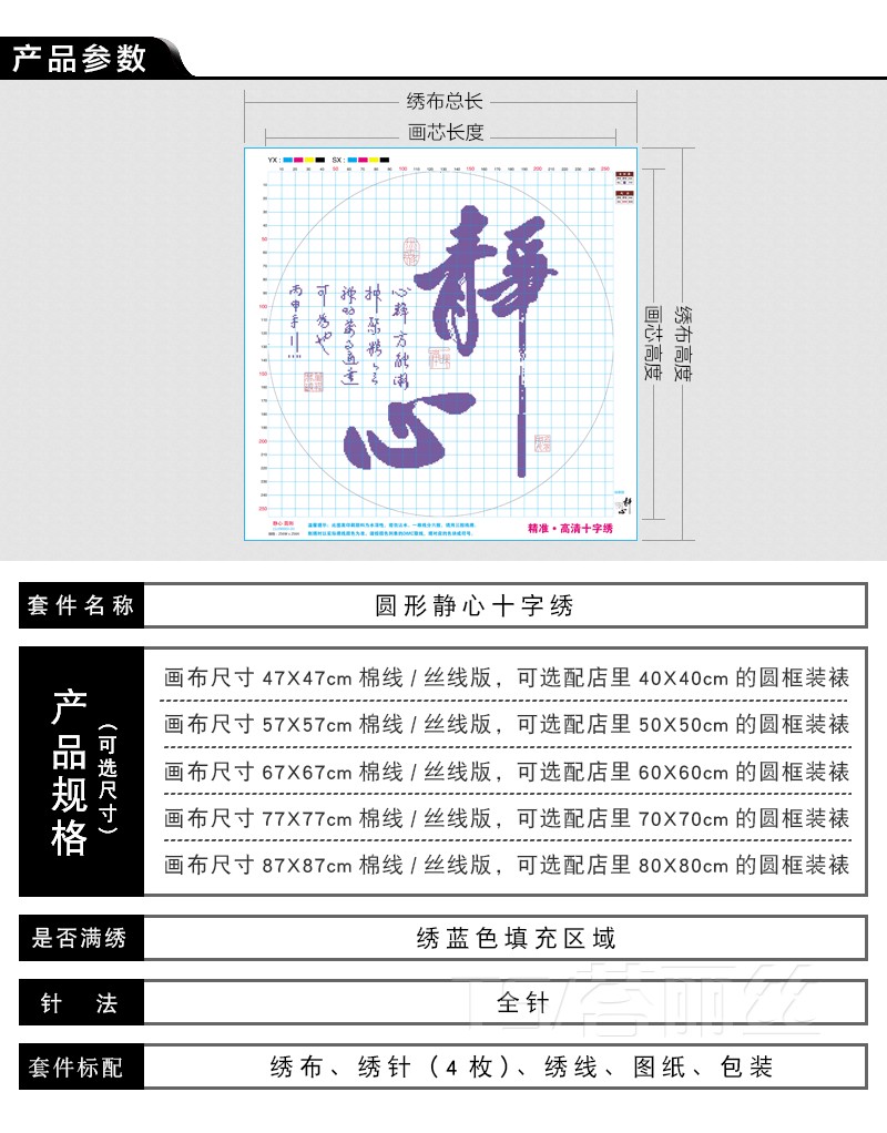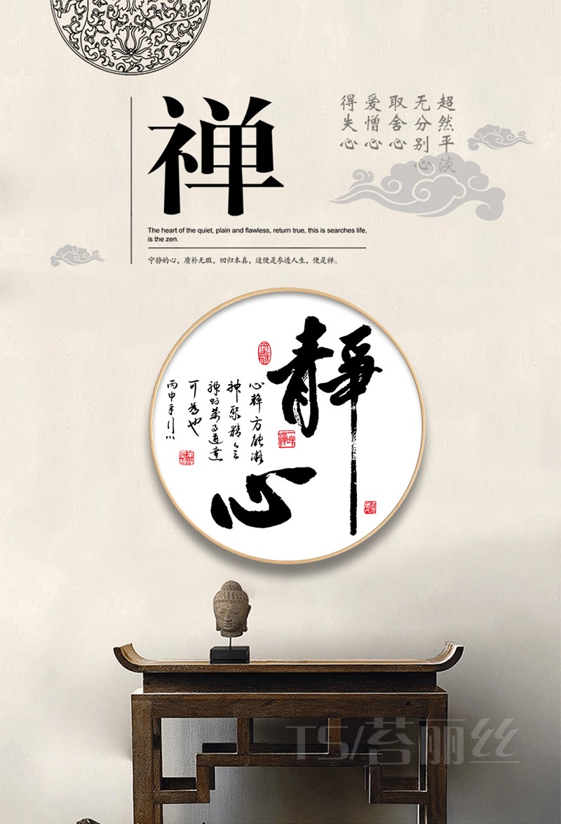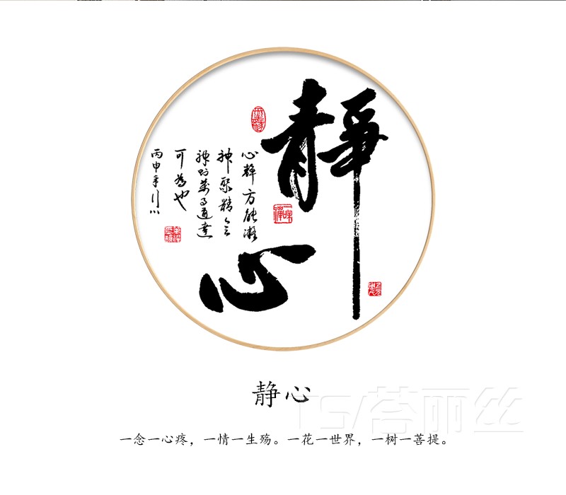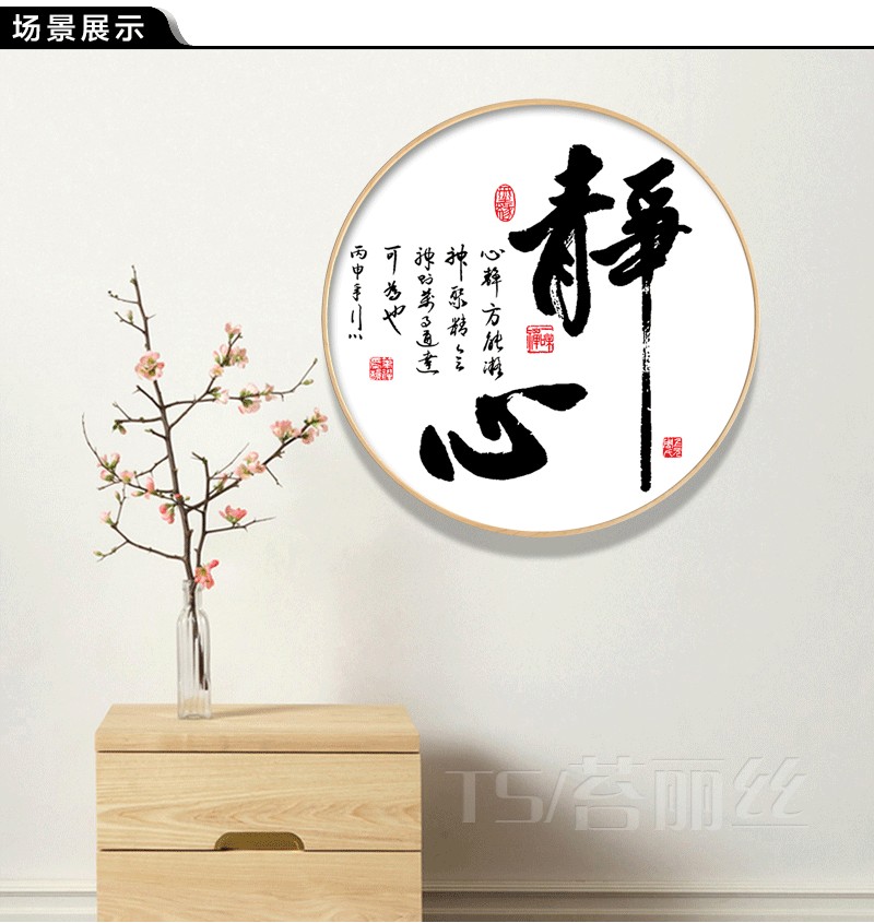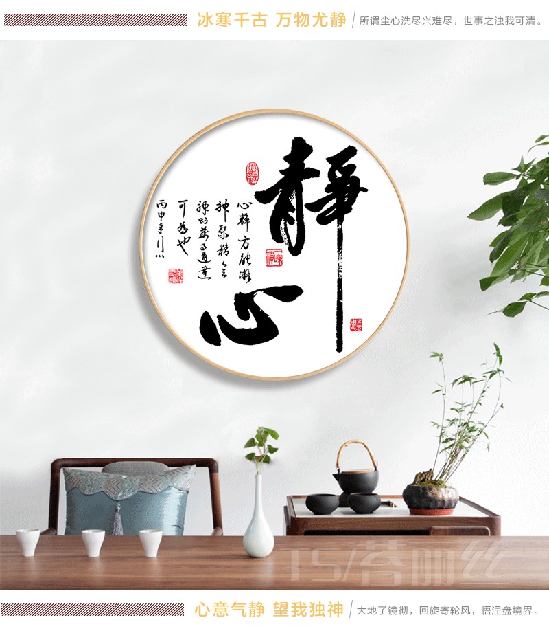 3d十字繡字繡靜心書法字畫純字新款線繡禪意圓形畫茶室客廳掛畫1入