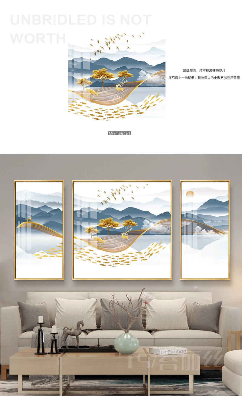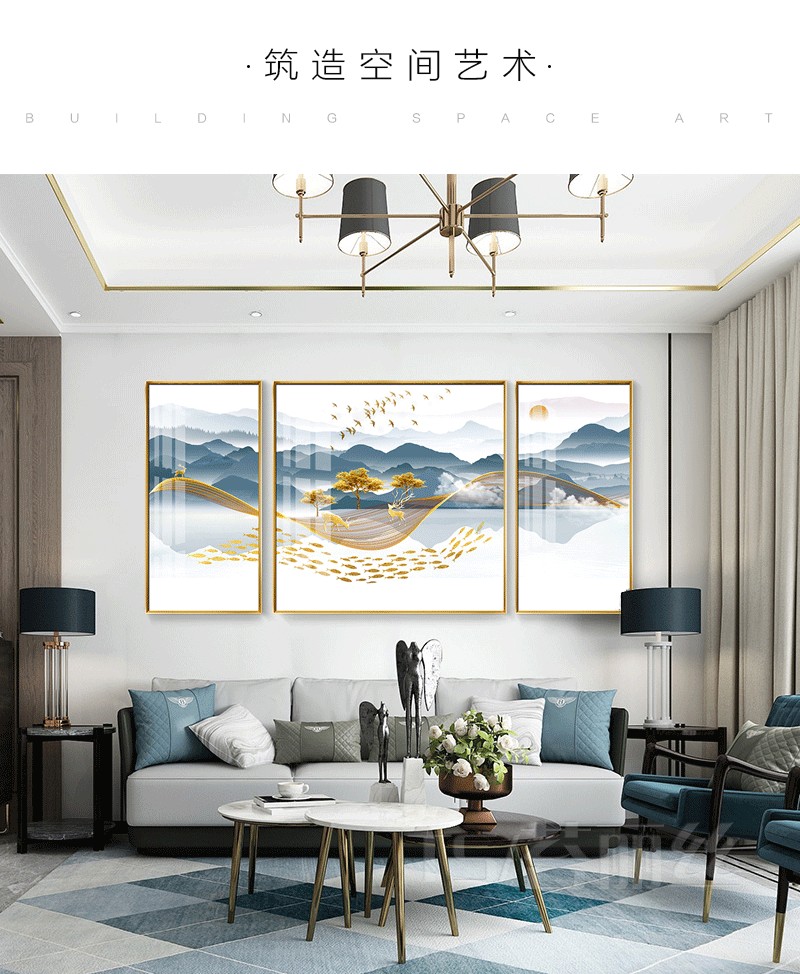 十字繡自己繡手工新中式山水畫三聯畫客廳滿繡線新手簡單繡初學者1入