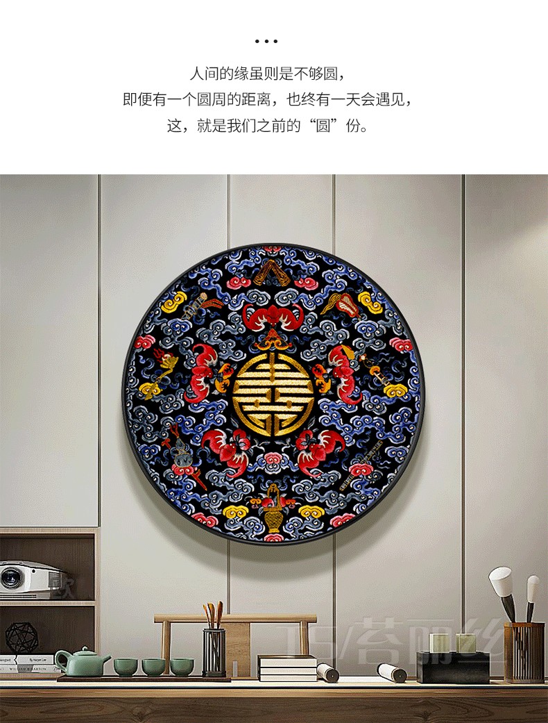 鉆石畫小幅古風五福臨門貼鉆十字繡圓形新中式古典掛畫鉆石繡玄關1入