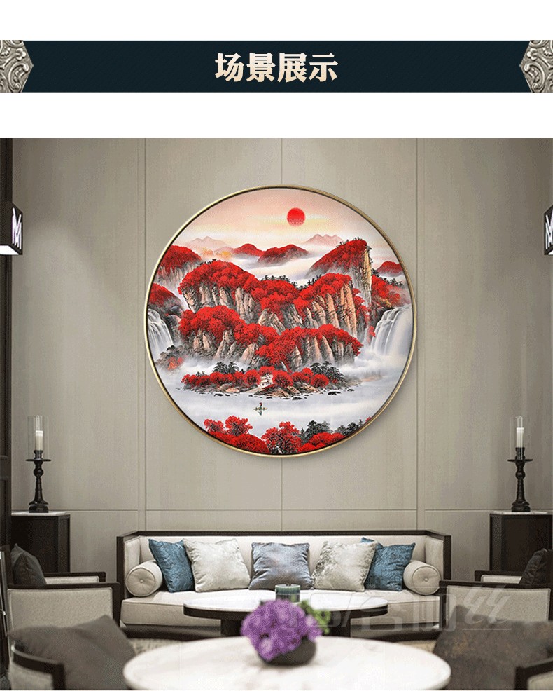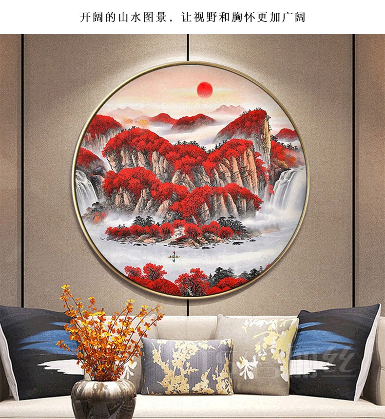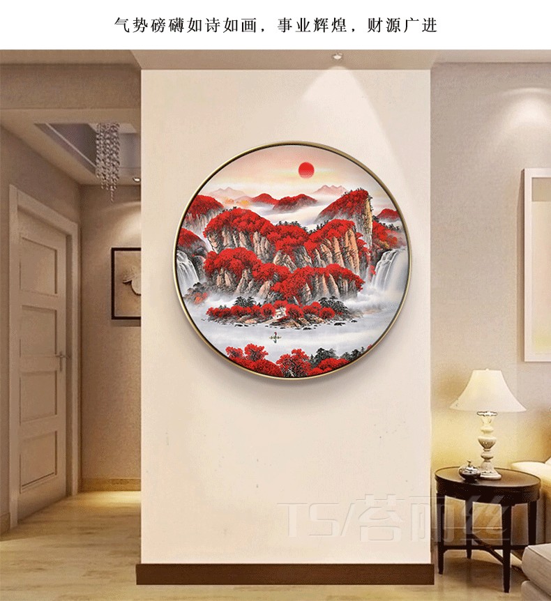 圓形鉆石畫滿鉆新款鴻運當頭現代客廳玄關走廊十字繡招財山水掛畫1入