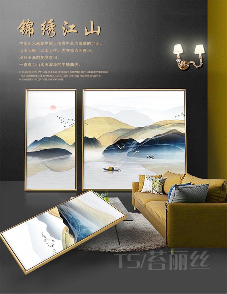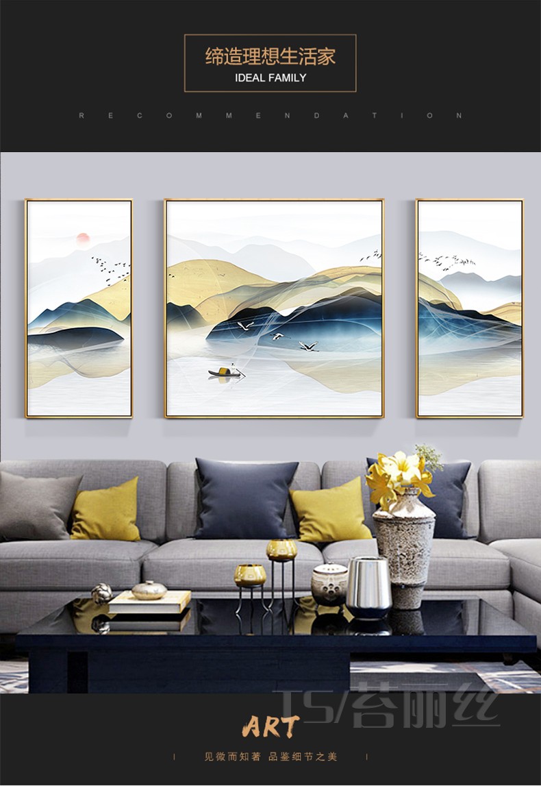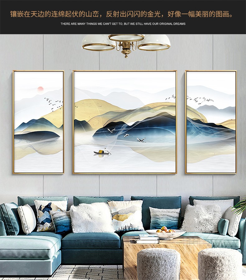5d鉆石畫滿鉆新款山水畫點鉆十字繡鉆石秀三聯畫客廳現代風景鉆繡1入
