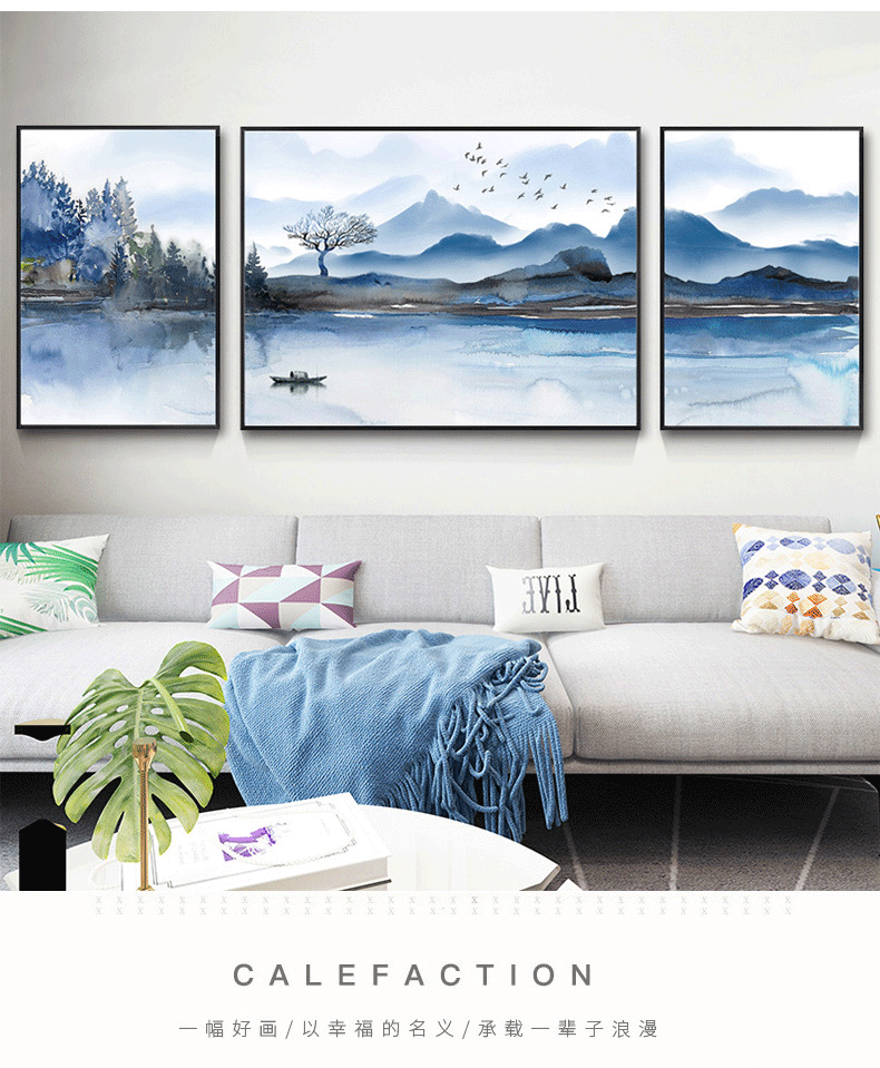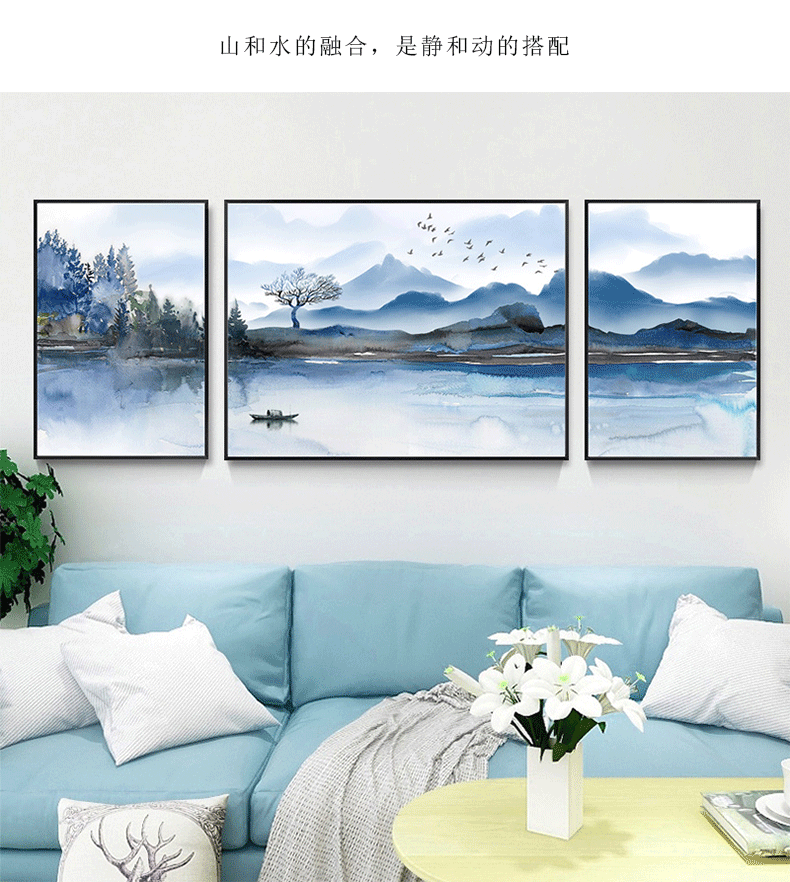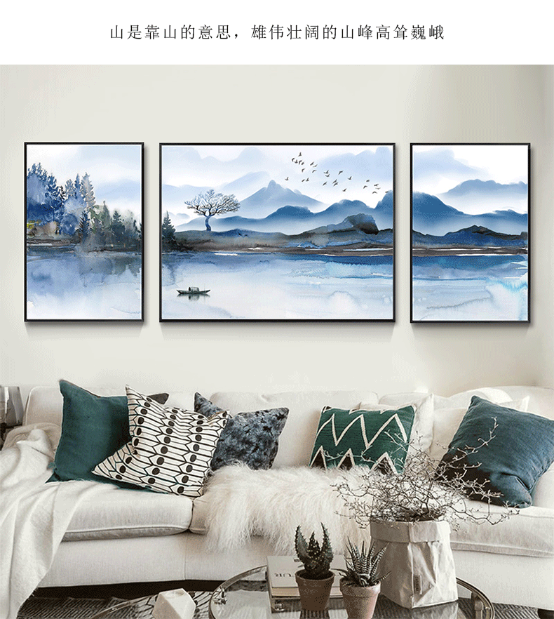 新中式十字繡鉆石繡沙發背景墻5d鉆石畫三聯山水畫風景現代客廳繡1入