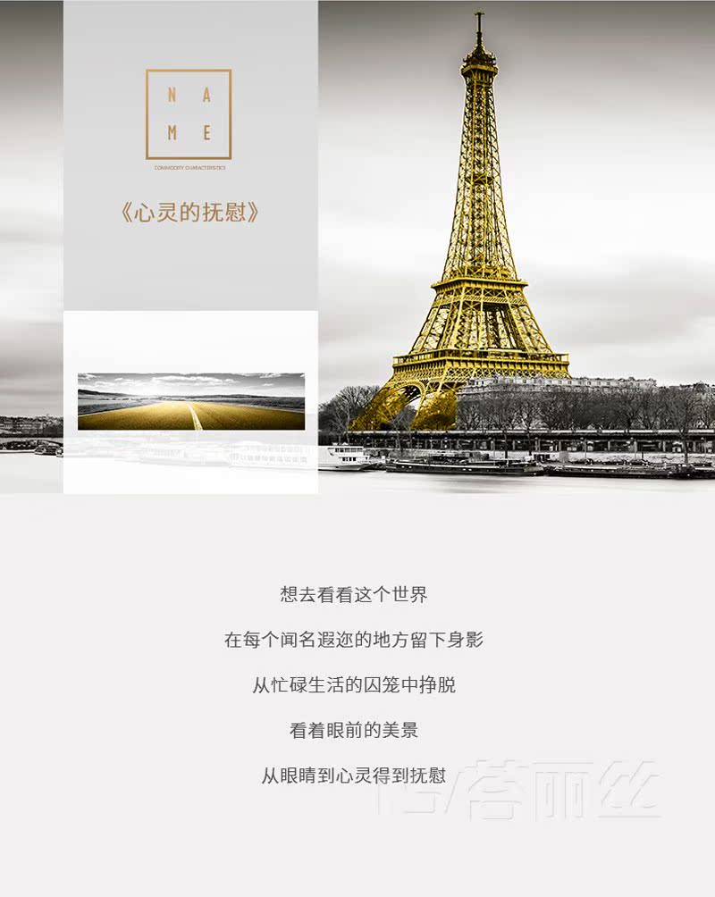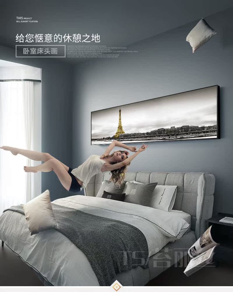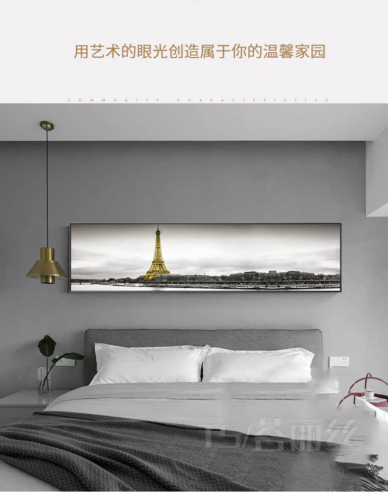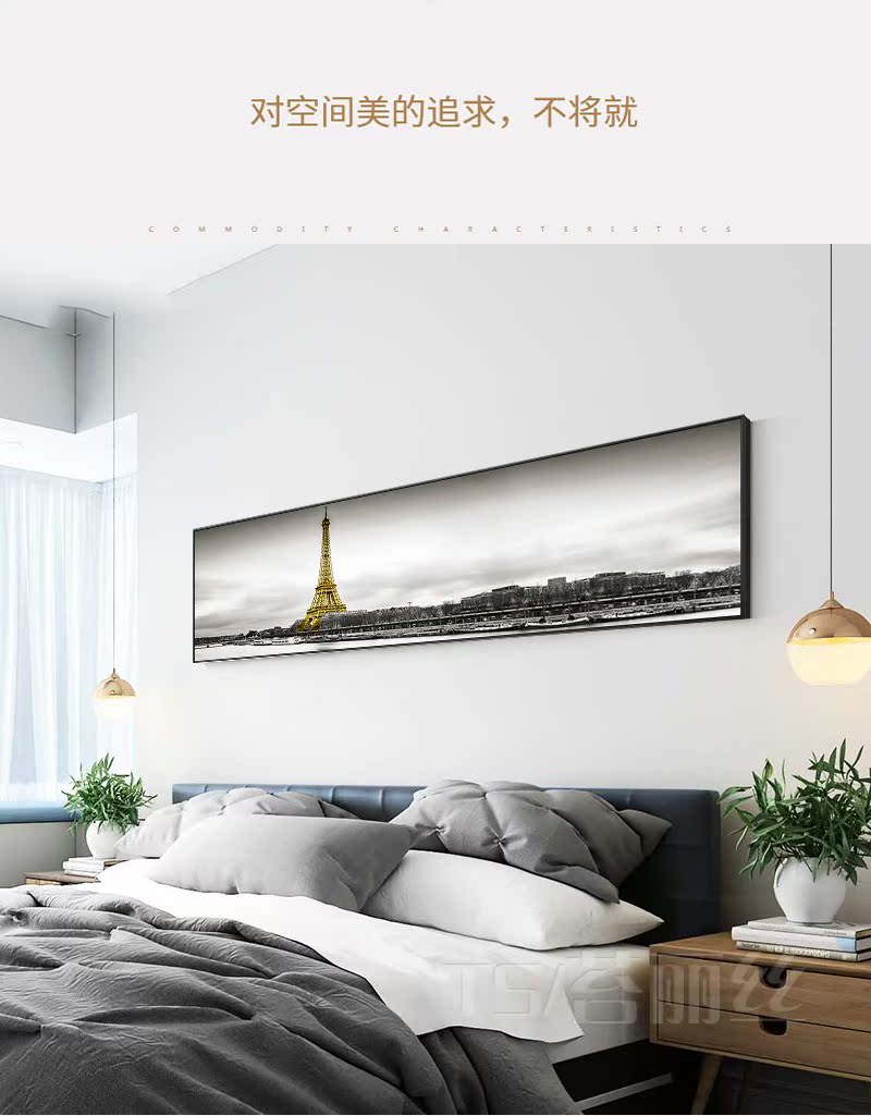 鉆石畫臥室掛畫床頭北歐簡約現代風景巴黎鐵塔鉆石繡十字繡磚石畫1入