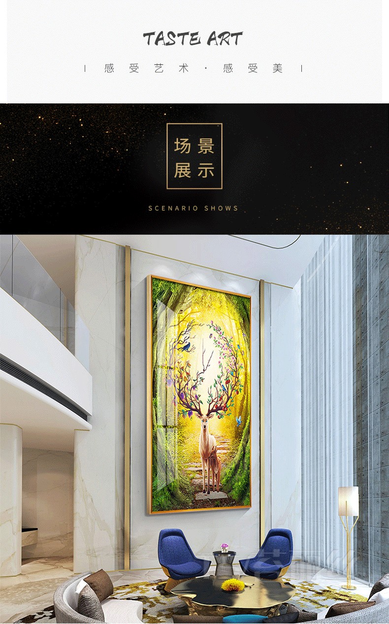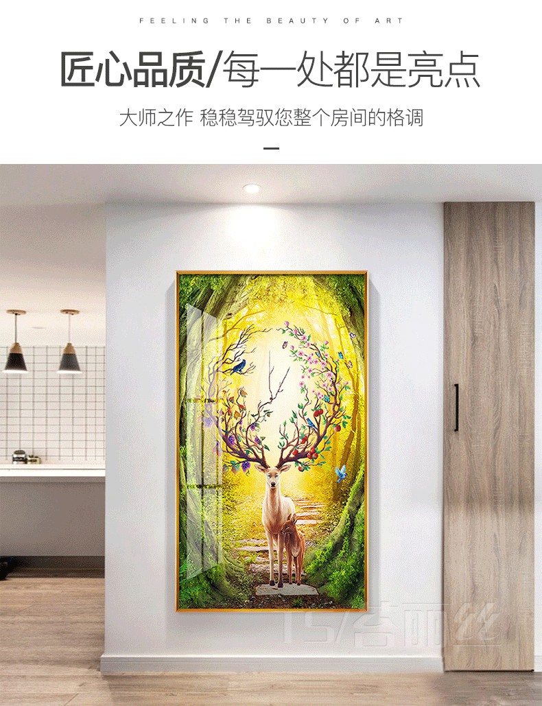 鉆石畫發財鹿十字繡2019新款繡鉆石繡玄關豎版歐式簡約麋鹿磚石繡1入