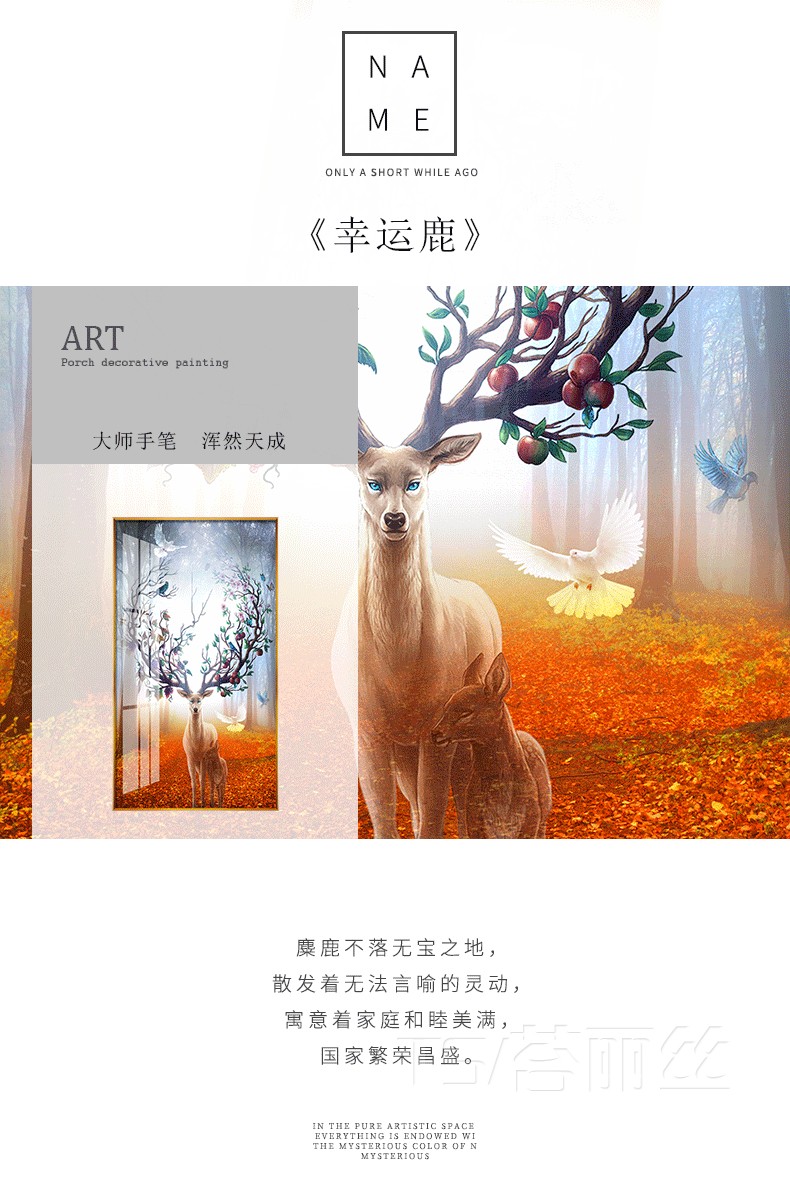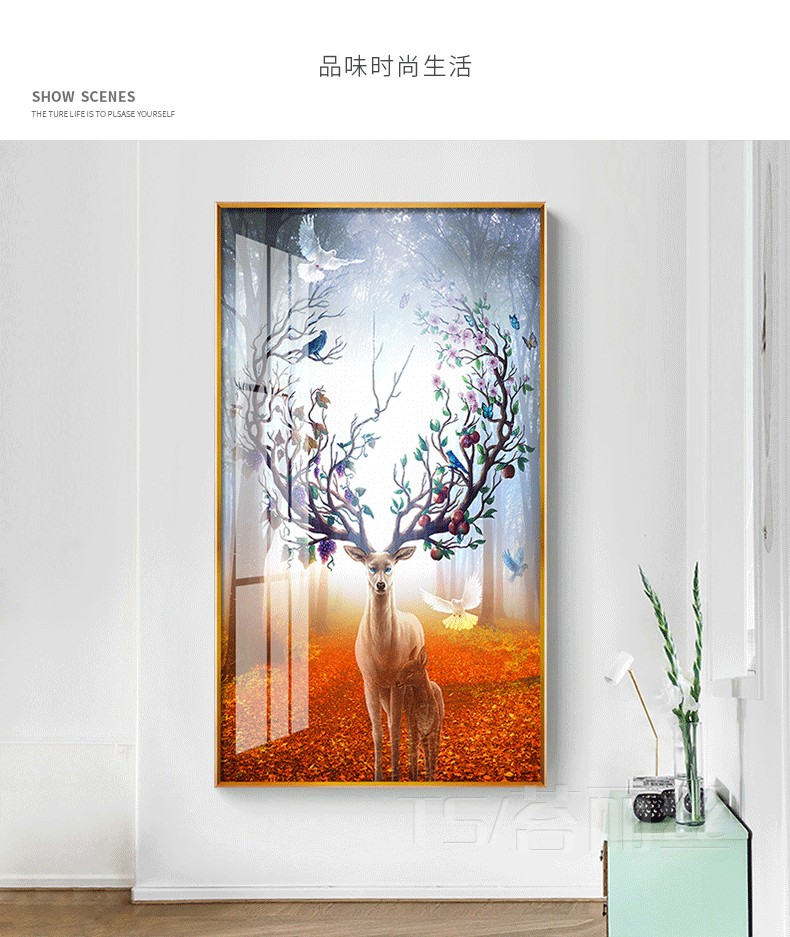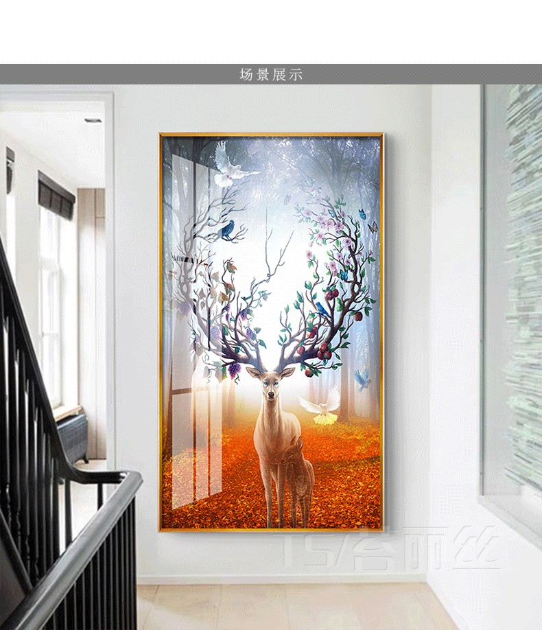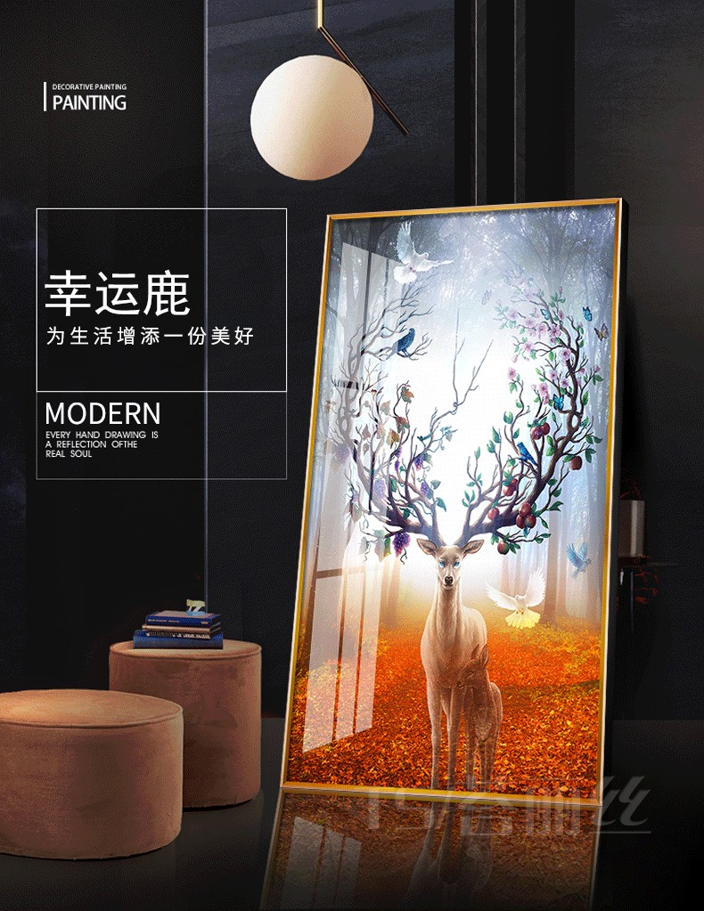 鉆石貼畫十字繡發財鹿北歐現代家用玄關麋鹿鉆石畫滿鉆財運磚石畫1入