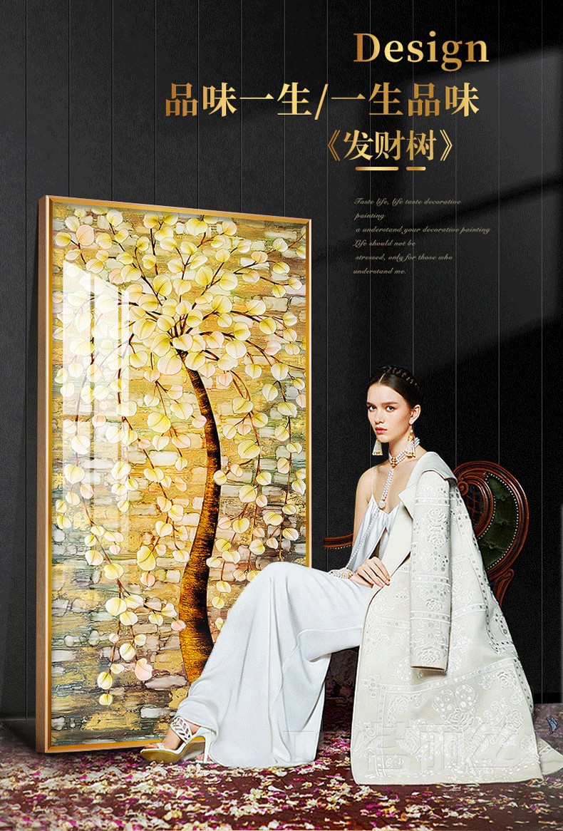 5d鉆石畫滿鉆發財樹現代客廳點鉆十字繡玄關豎版入戶搖錢樹鉆石繡1入