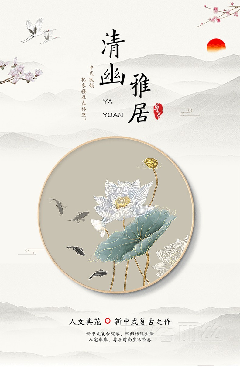 圓形鉆石畫滿鉆新款荷花韻優雅點鉆十字繡客廳玄關掛畫鉆石繡餐廳1入