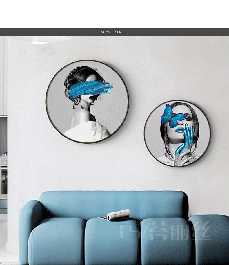 鉆石畫小幅簡約現代藝術人物蝴蝶點鉆十字繡臥室圓形鉆石繡磚石畫1入