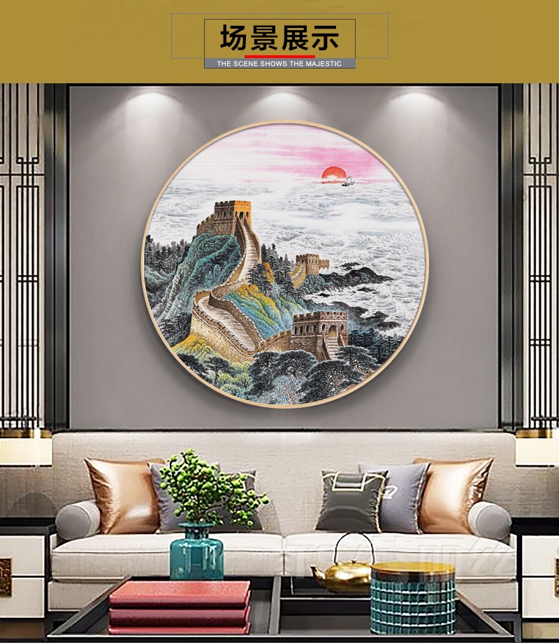 中國風貼鉆十字繡萬里長城鉆石畫滿鉆圓形畫客廳書法財運版鉆石繡1入