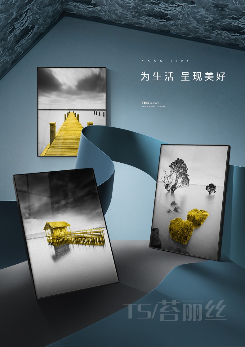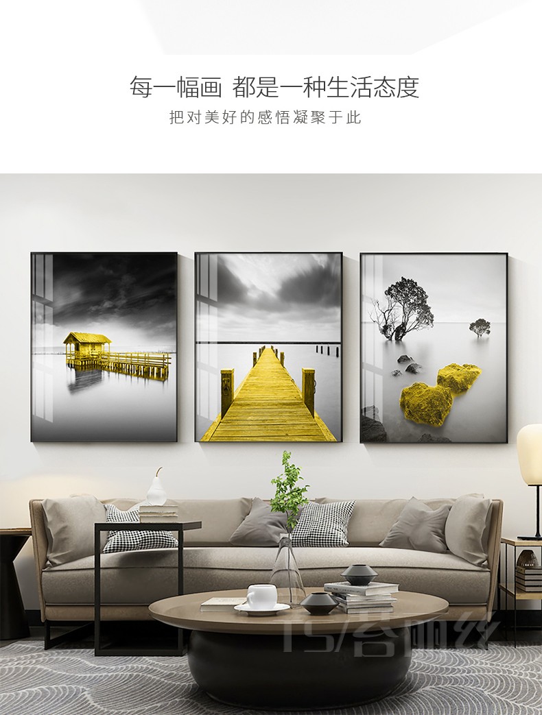 北歐輕奢客廳三聯畫鉆石畫沙發背景墻現代黑白風景餐廳鉆石十字繡1入