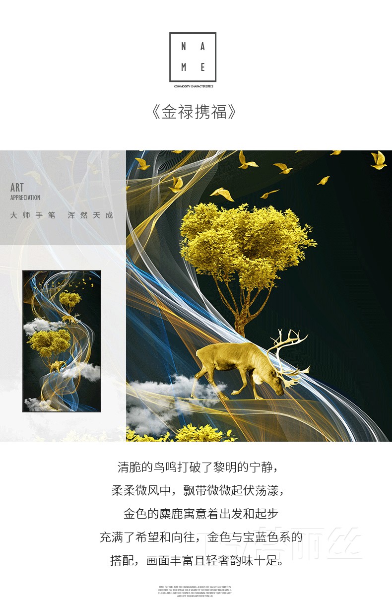 北歐現代輕奢玄關鉆石十字繡滿鉆招財鹿發財樹簡約客廳豎版鉆石畫1入