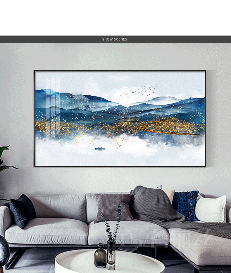 新中式客廳鉆石繡滿鉆橫幅大氣招財抽象山水貼鉆十字繡現代簡約風1入