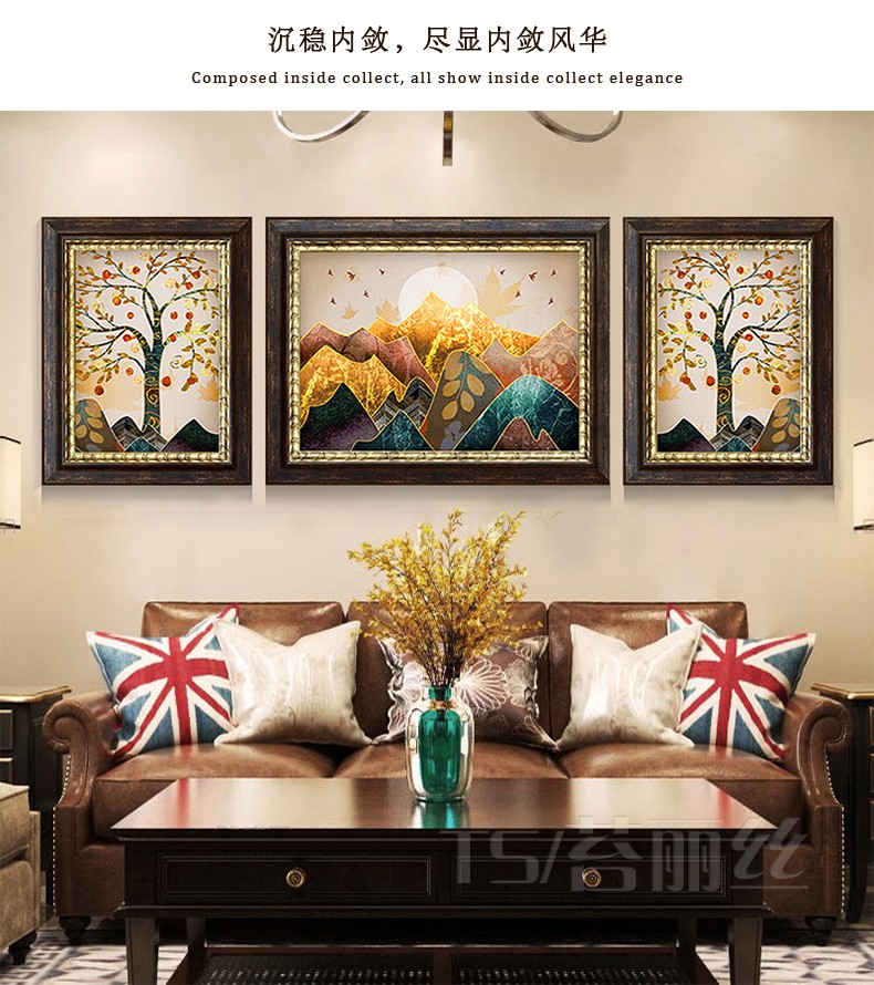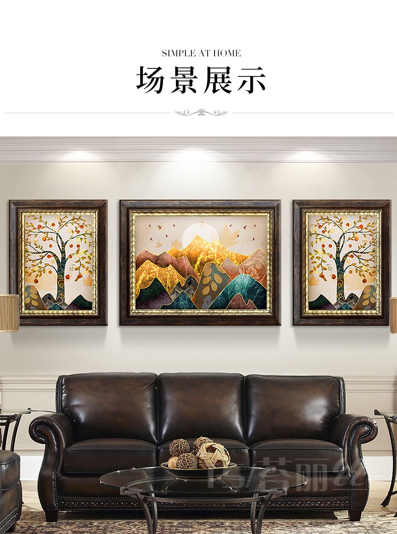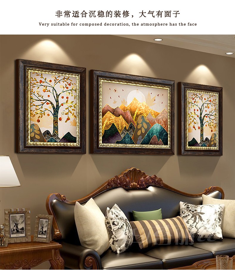 歐式復古客廳三聯畫十字繡美式風格發財樹滿繡線棉線精準印花刺繡1入