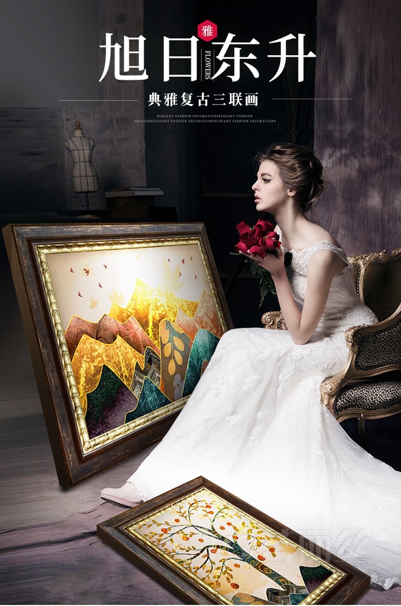 KT613320mm厚板白色框大號 直徑30CM美式客廳沙發背景墻裝飾畫歐式臥室壁畫掛畫餐廳玄關墻畫現代簡約
