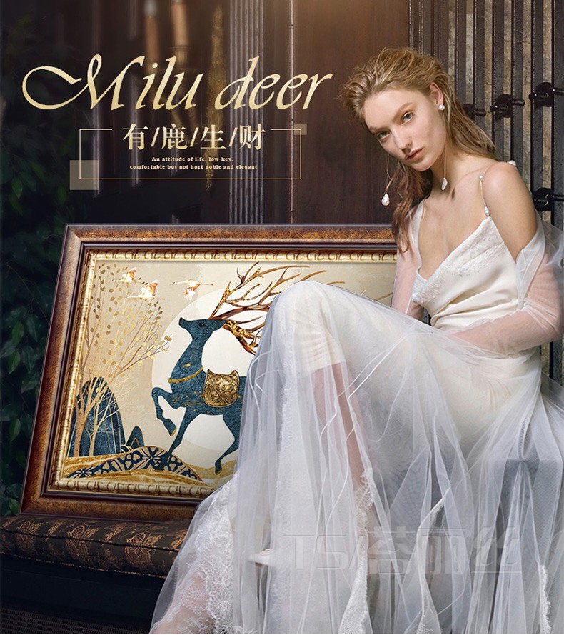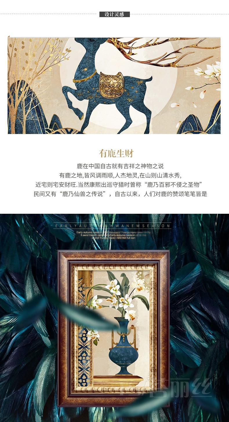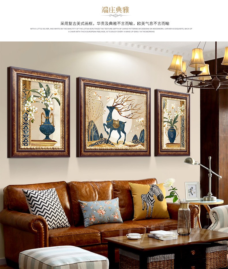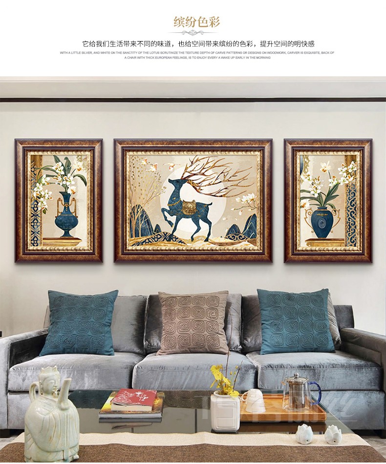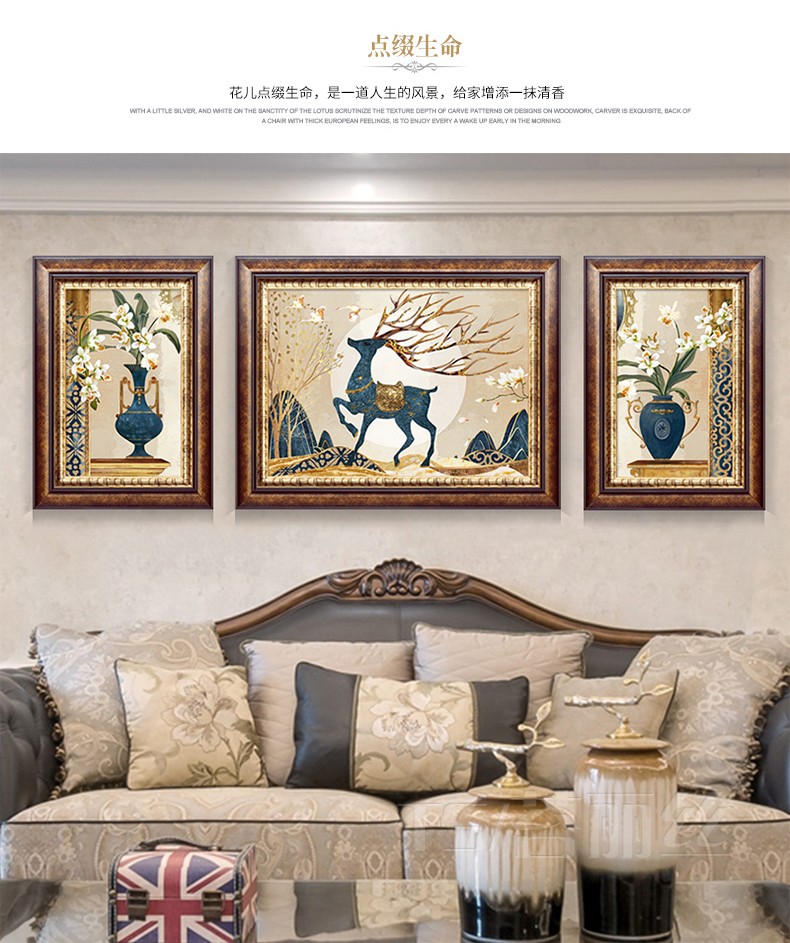 美式十字繡三聯畫客廳富貴平安玉蘭花發財鹿線繡全繡精準印花滿繡1入