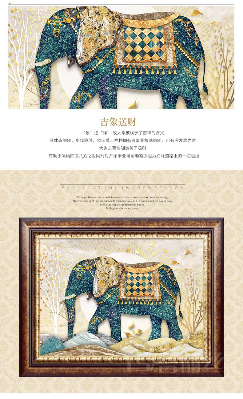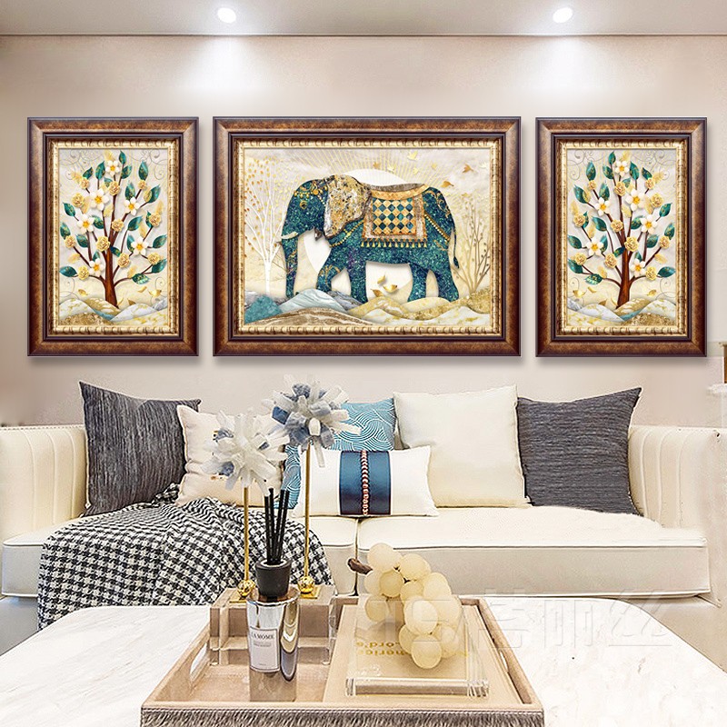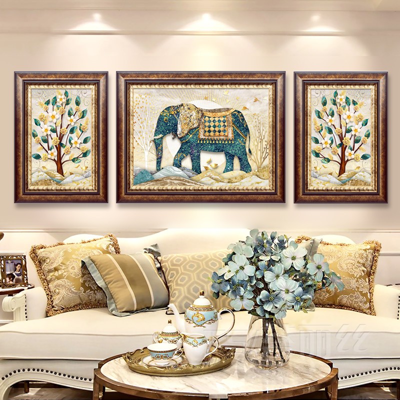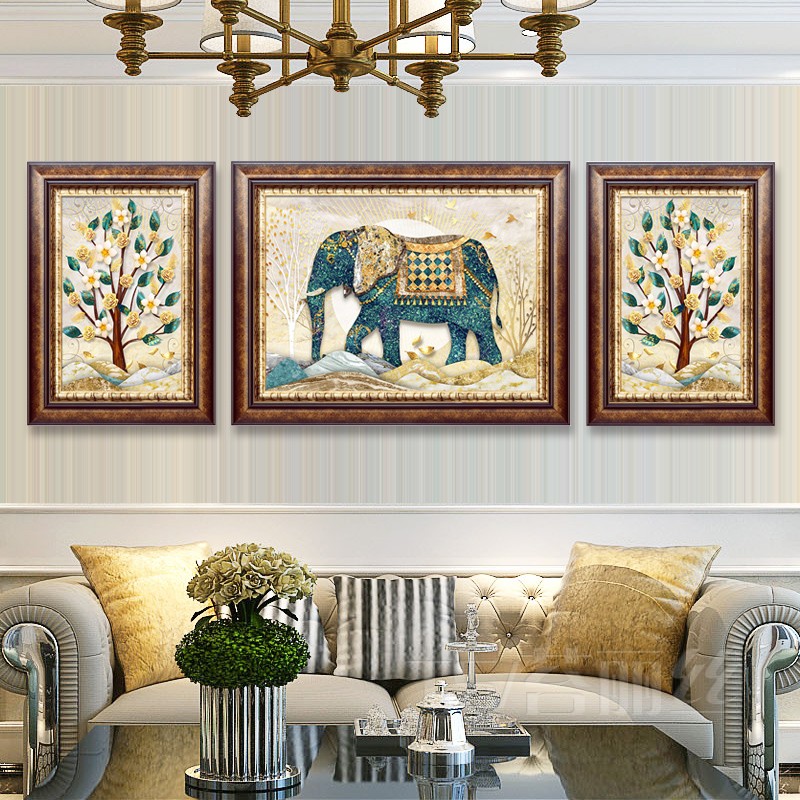 歐式客廳吉祥大象十字繡2019新款繡三聯畫滿繡精準印花滿繡棉線1入