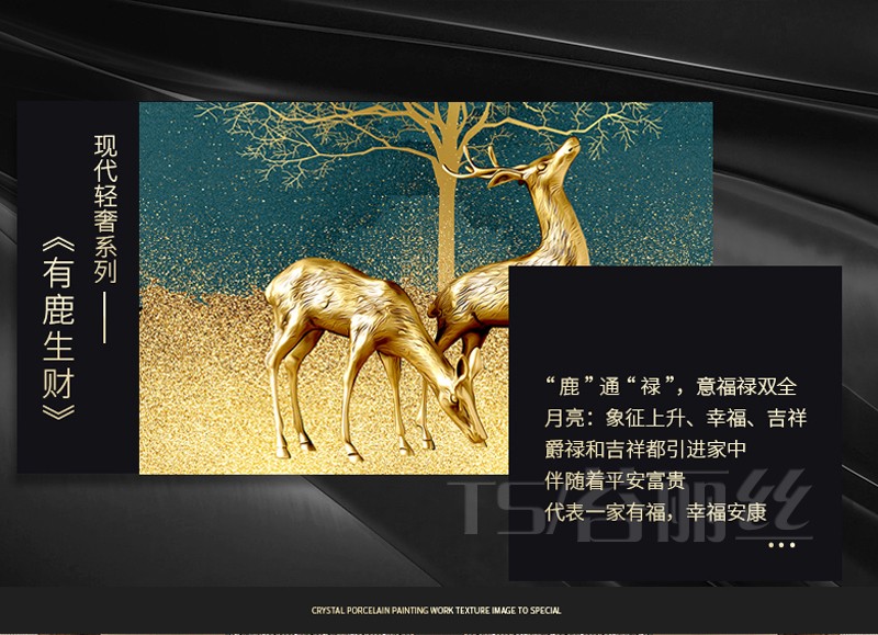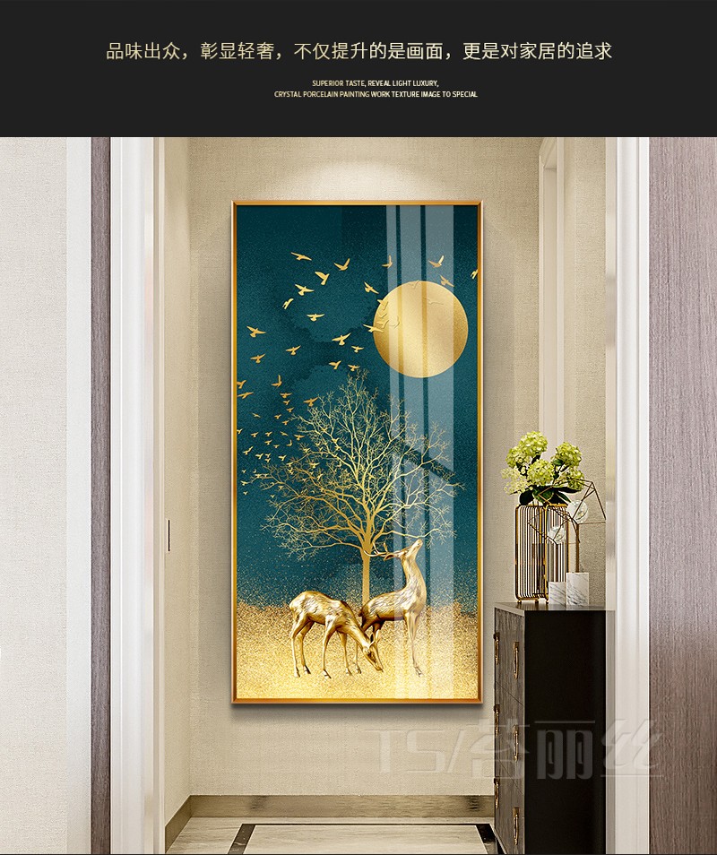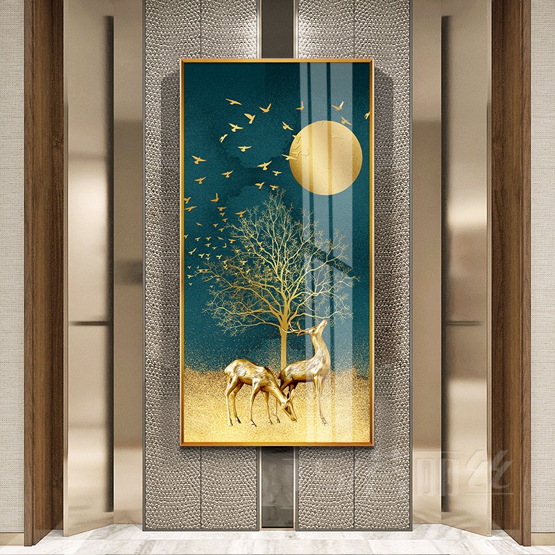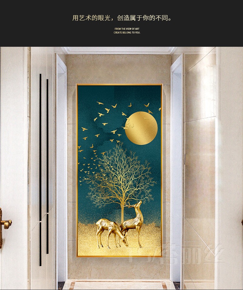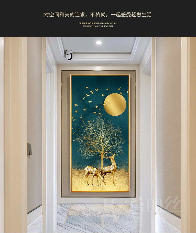 簡約現代輕奢客廳玄關十字繡豎版線繡發財樹麋鹿招財印花絲線全繡1入