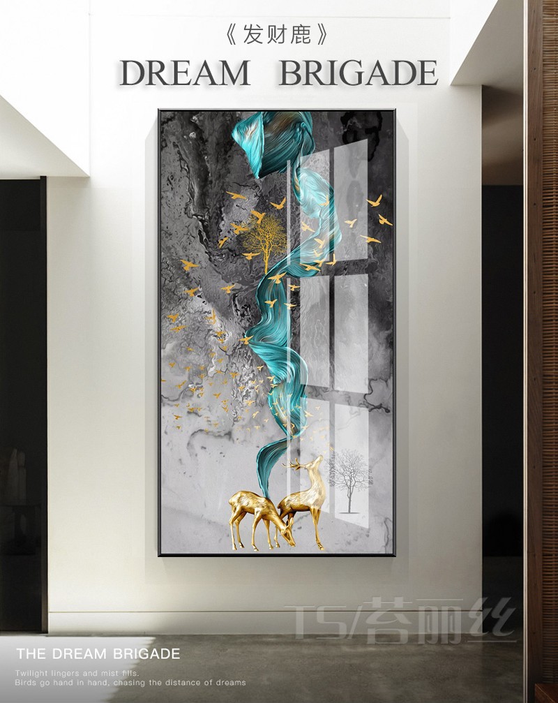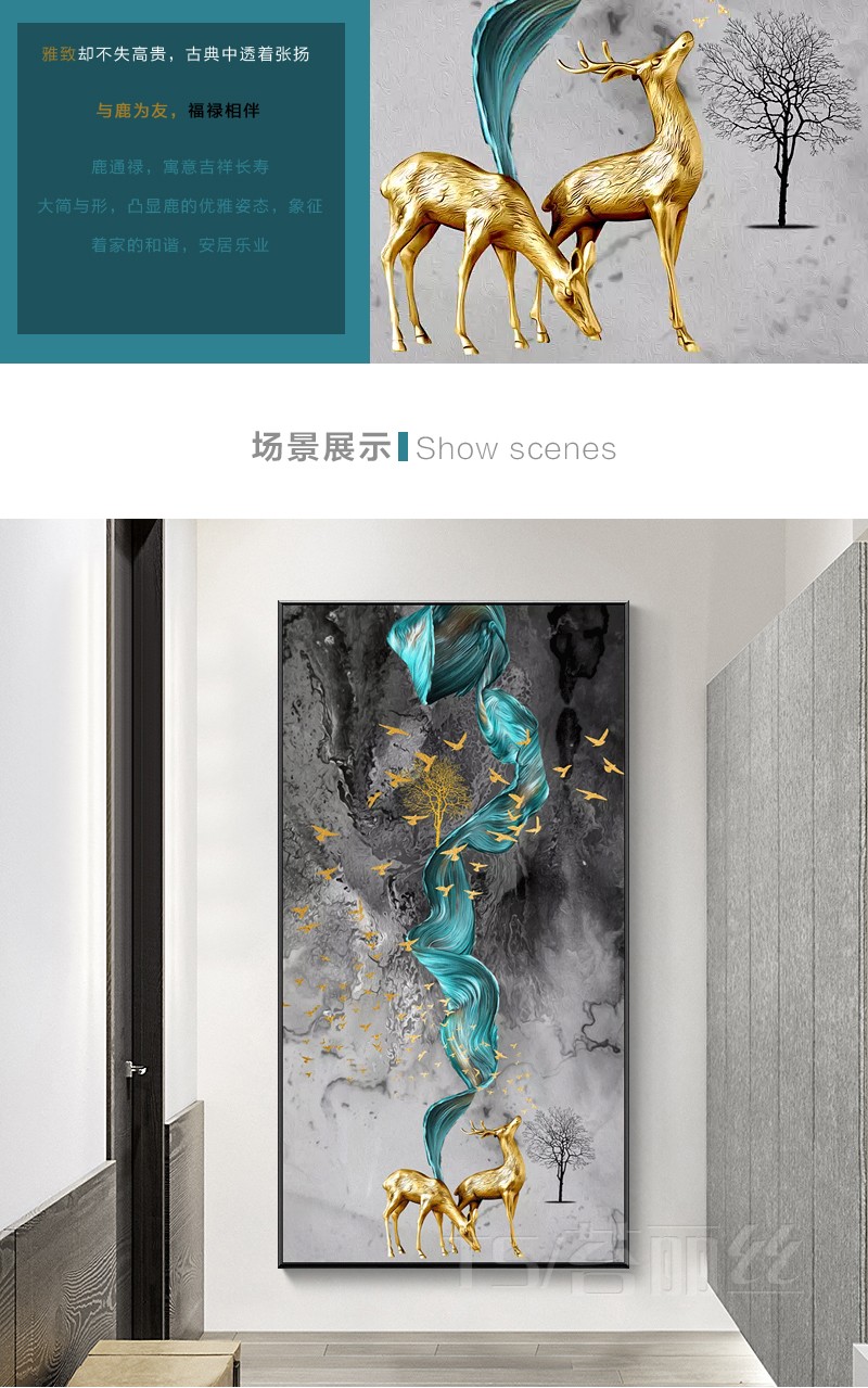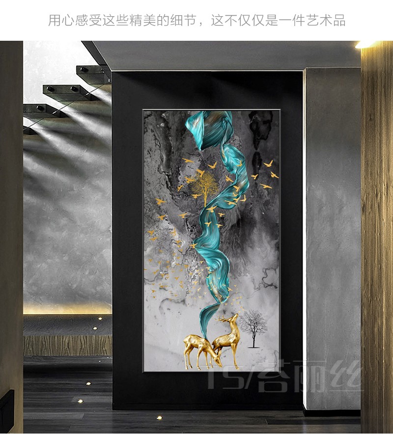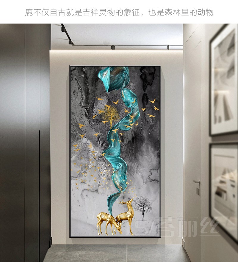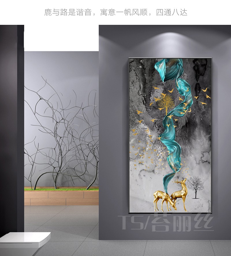 北歐簡約現代發財鹿十字繡玄關豎版新款客廳全繡棉線精準印花刺繡1入